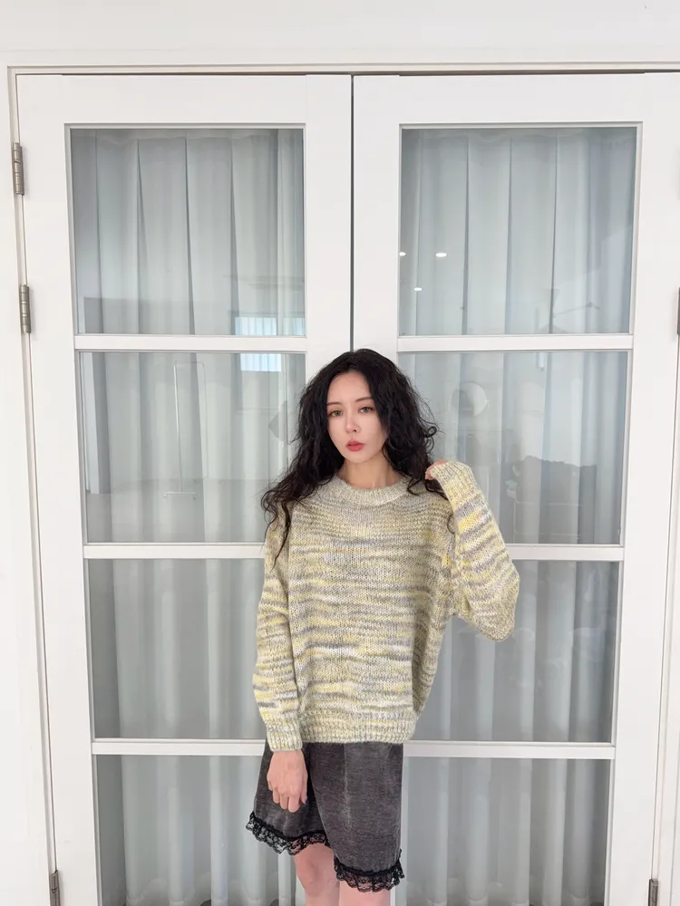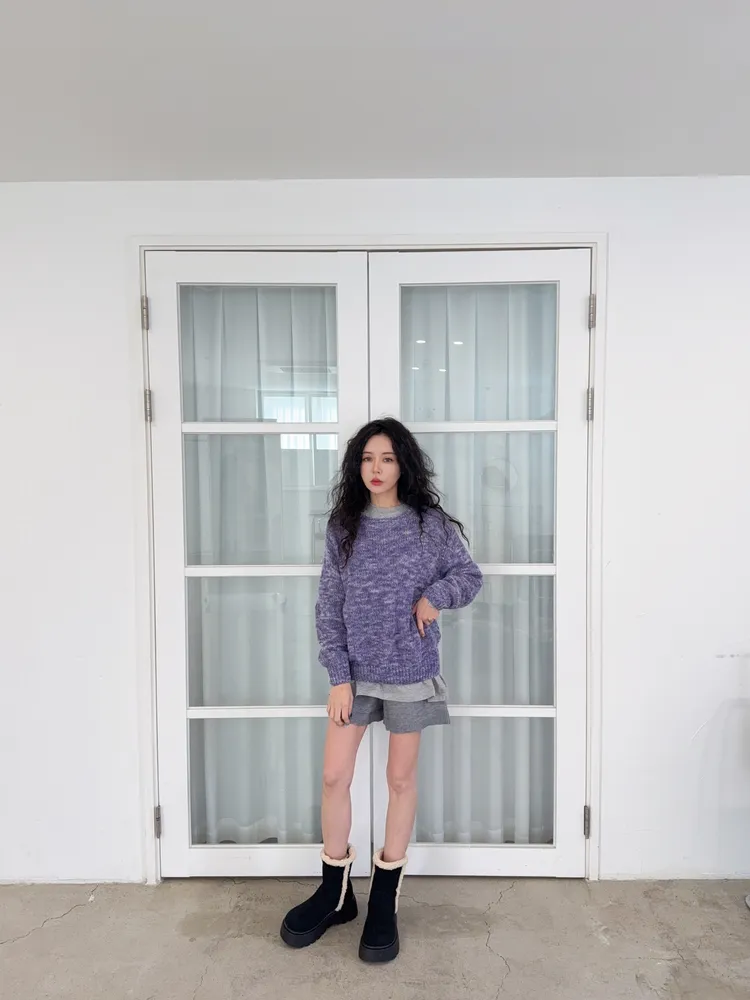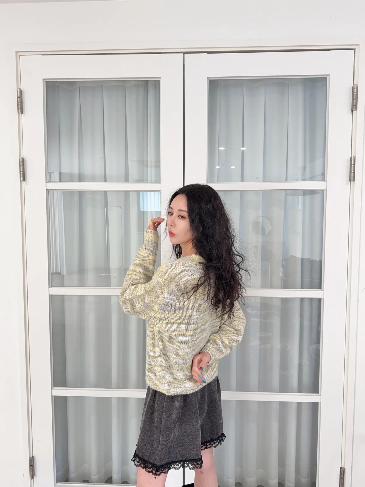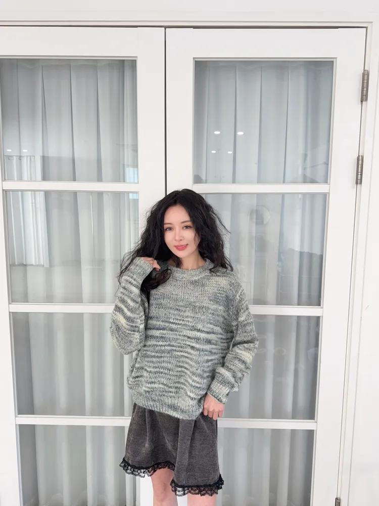羊毛30%壓克力纖維35%尼龍35%這款毛衣我有給你們看近的(影片)他完全不是厚厚的那種反而相對輕盈的毛衣最喜歡這種暈染感的毛線混再一起 整體看起來有夠柔和這種上衣單穿 或是內配襯衫在裡面都可以很有型會怕纖維太大會透風的 可以裡面配一件衛生衣 就可以囉