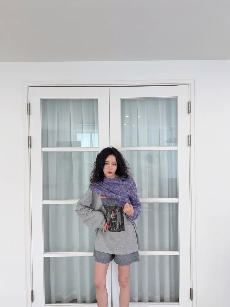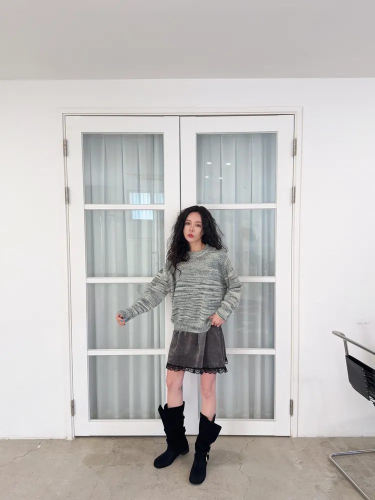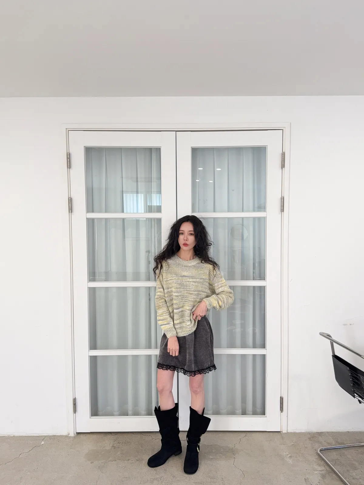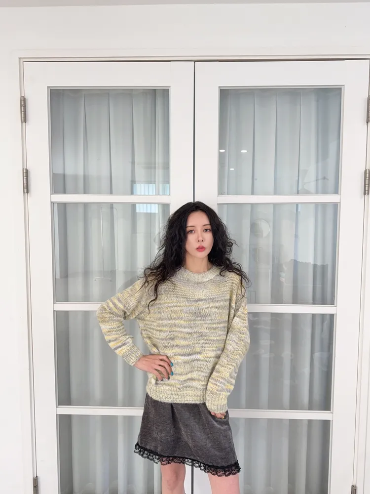 羊毛30%壓克力纖維35%尼龍35%這款毛衣我有給你們看近的(影片)他完全不是厚厚的那種反而相對輕盈的毛衣最喜歡這種暈染感的毛線混再一起 整體看起來有夠柔和這種上衣單穿 或是內配襯衫在裡面都可以很有型會怕纖維太大會透風的 可以裡面配一件衛生衣 就可以囉