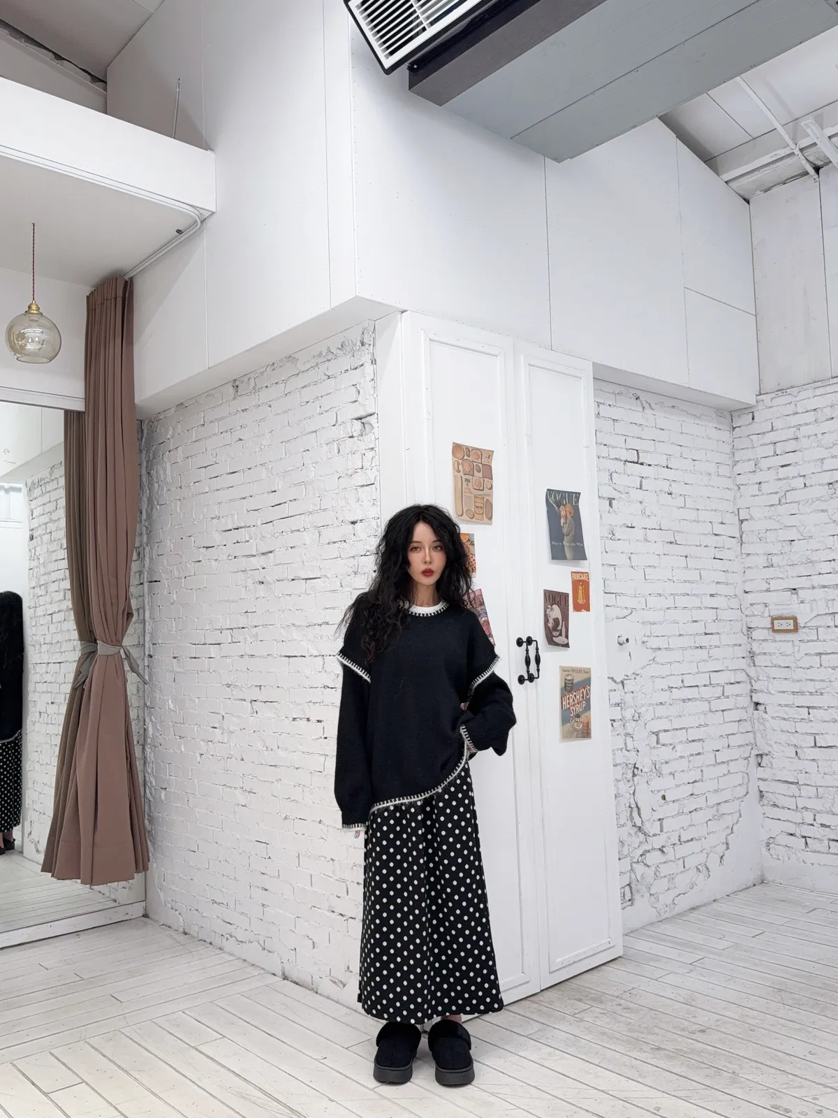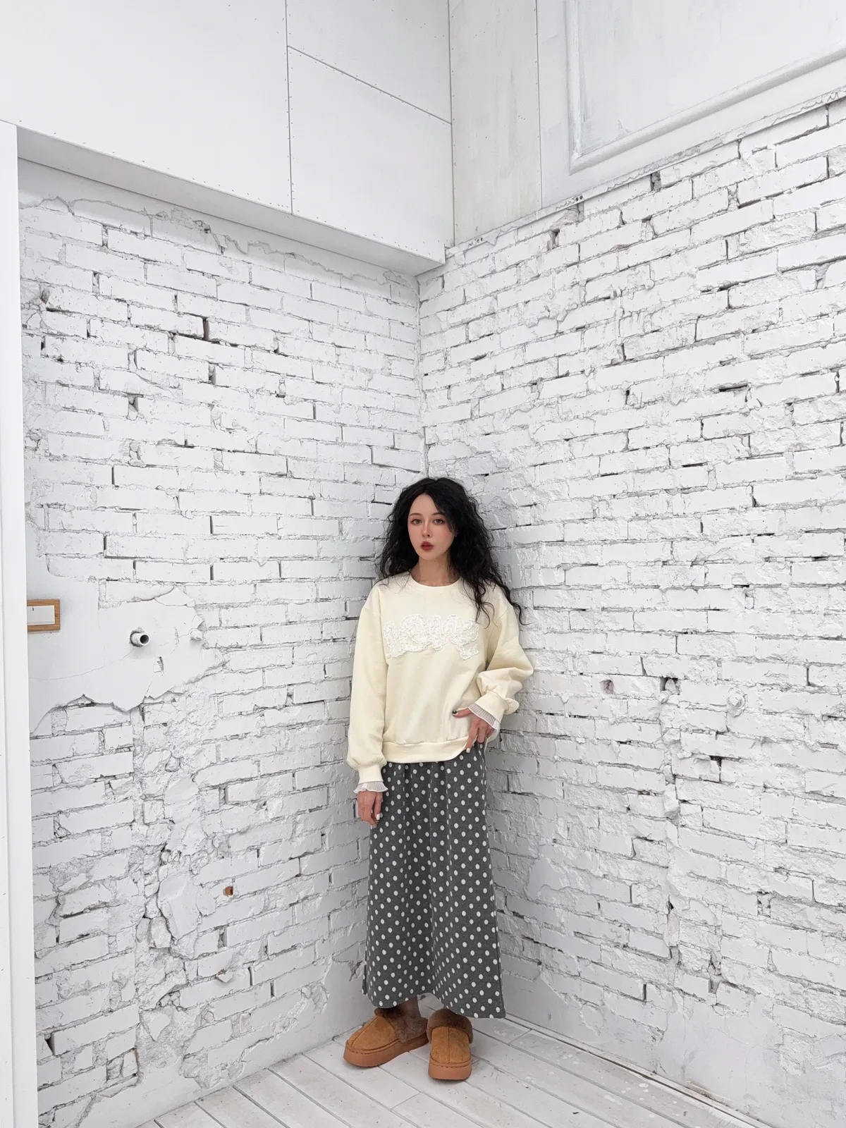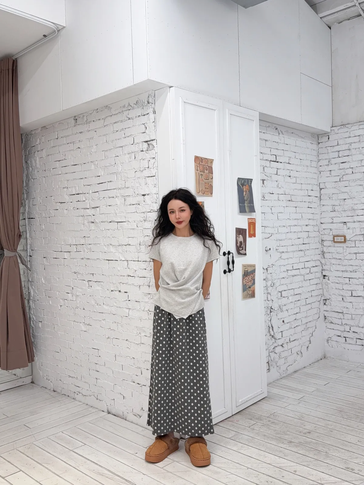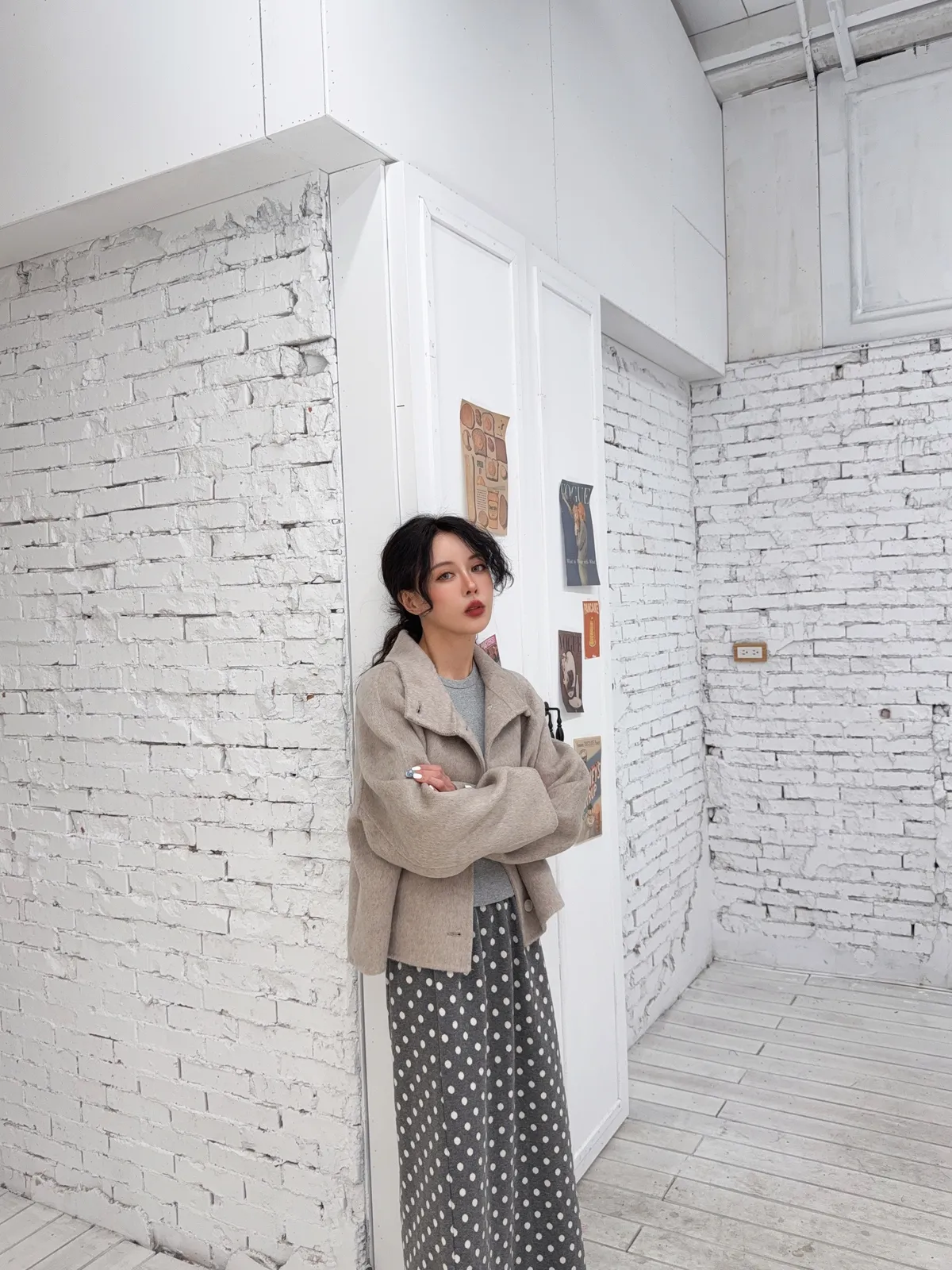 棉80% 聚酯纖維15% 彈性纖維5%毛料點點長裙 超讚的是面料本人有彈性不會真的穿上後動彈不得 是鉛筆裙的進化版 可以伸縮自如的鉛筆(笑)背後有開衩 所以走路起來更是便利這件毛料不是過度厚的材質 不會硬梆梆唷整件都是彈性裙頭如果你是棉花糖會怕毛料彈性你不一定可以進去可以等回台灣郭郭的直播 因為我現在也還沒看他穿過 我也沒把握