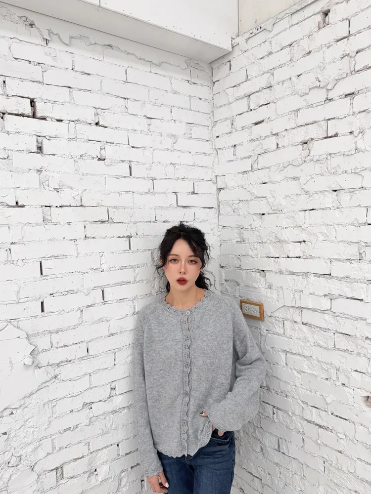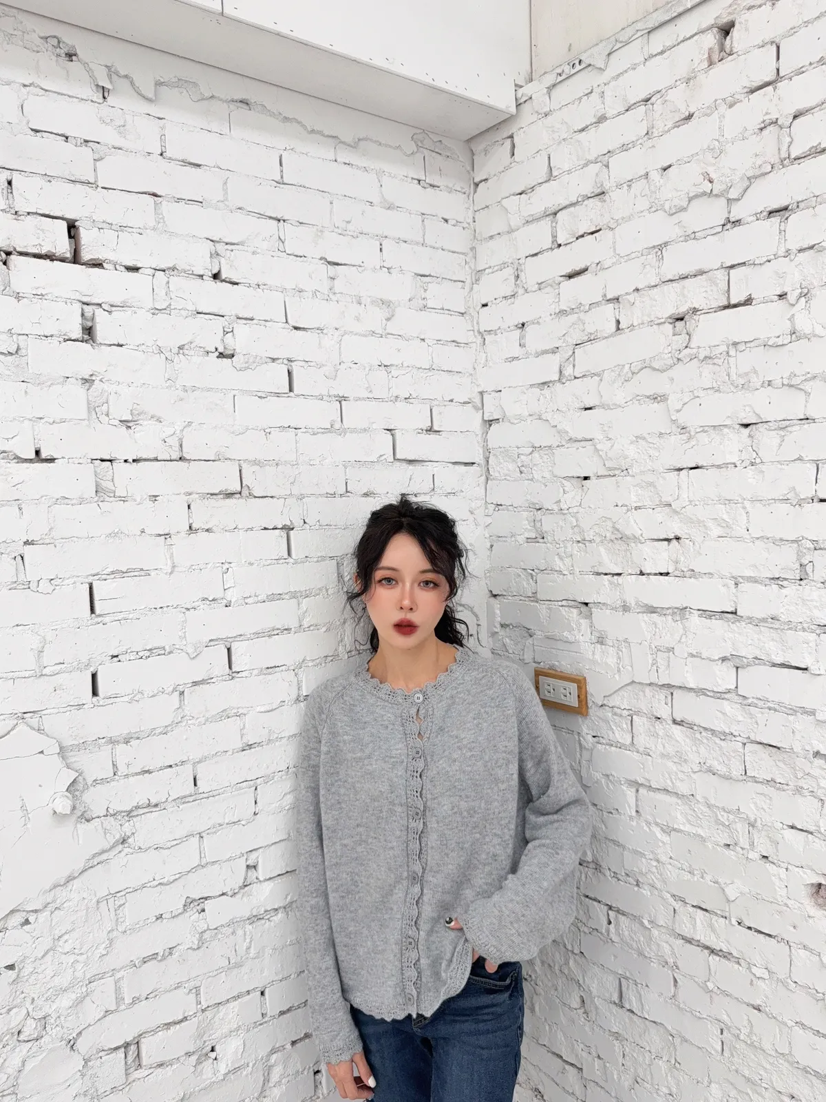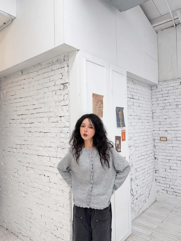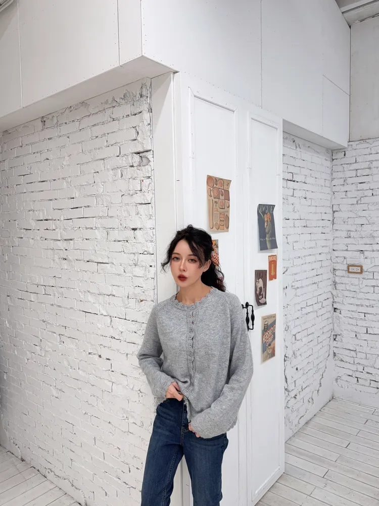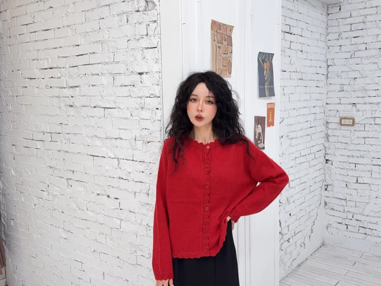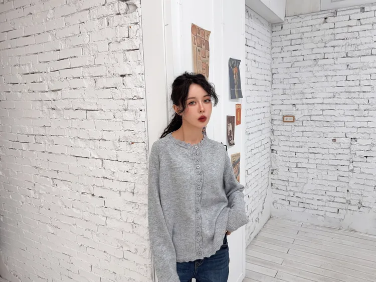 他釦子跟領口下擺周圍都是有花邊的弧度