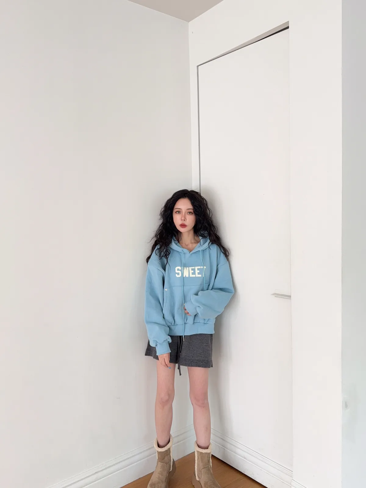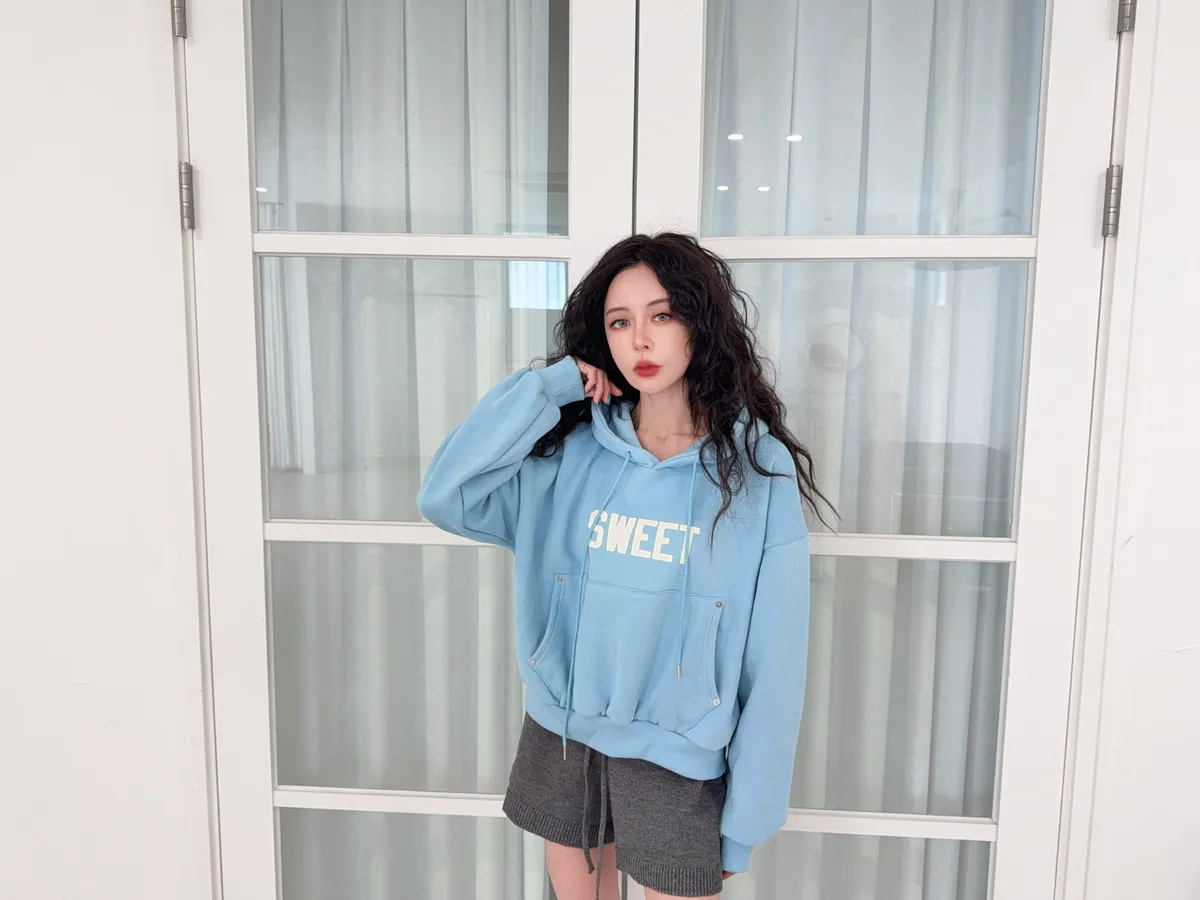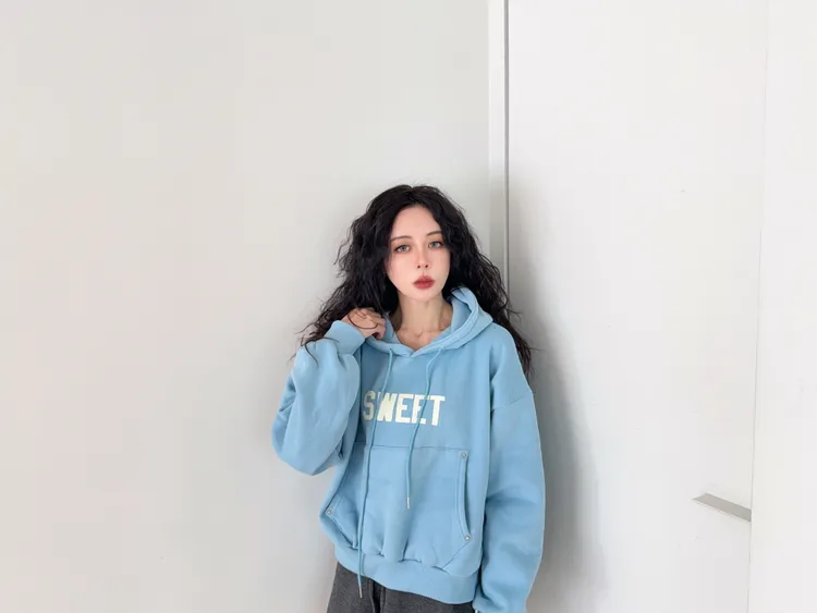 棉70% 聚酯纖維30%這件帽踢的配色超級莫蘭迪藍跟粉都是帶有灰感加上表面都是柔絨的大學踢表面 所以霧霧感配上灰灰莫蘭迪的配色 整體很溫暖舒適內裡有微微磨毛正面有可以插手的口袋設計可以插手的那邊裡面也有微磨毛唷口袋差的地方邊邊還有小小五金的點綴這件帽踢的配色太可愛 我超喜歡的噎好久沒有看到那麼令人心動的莫蘭迪配色