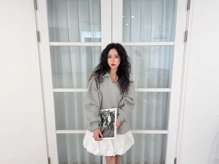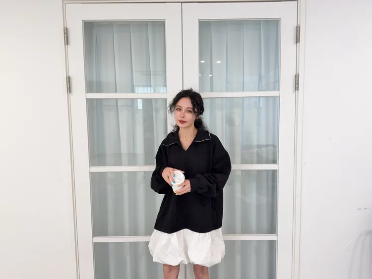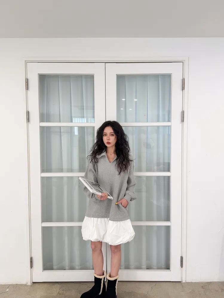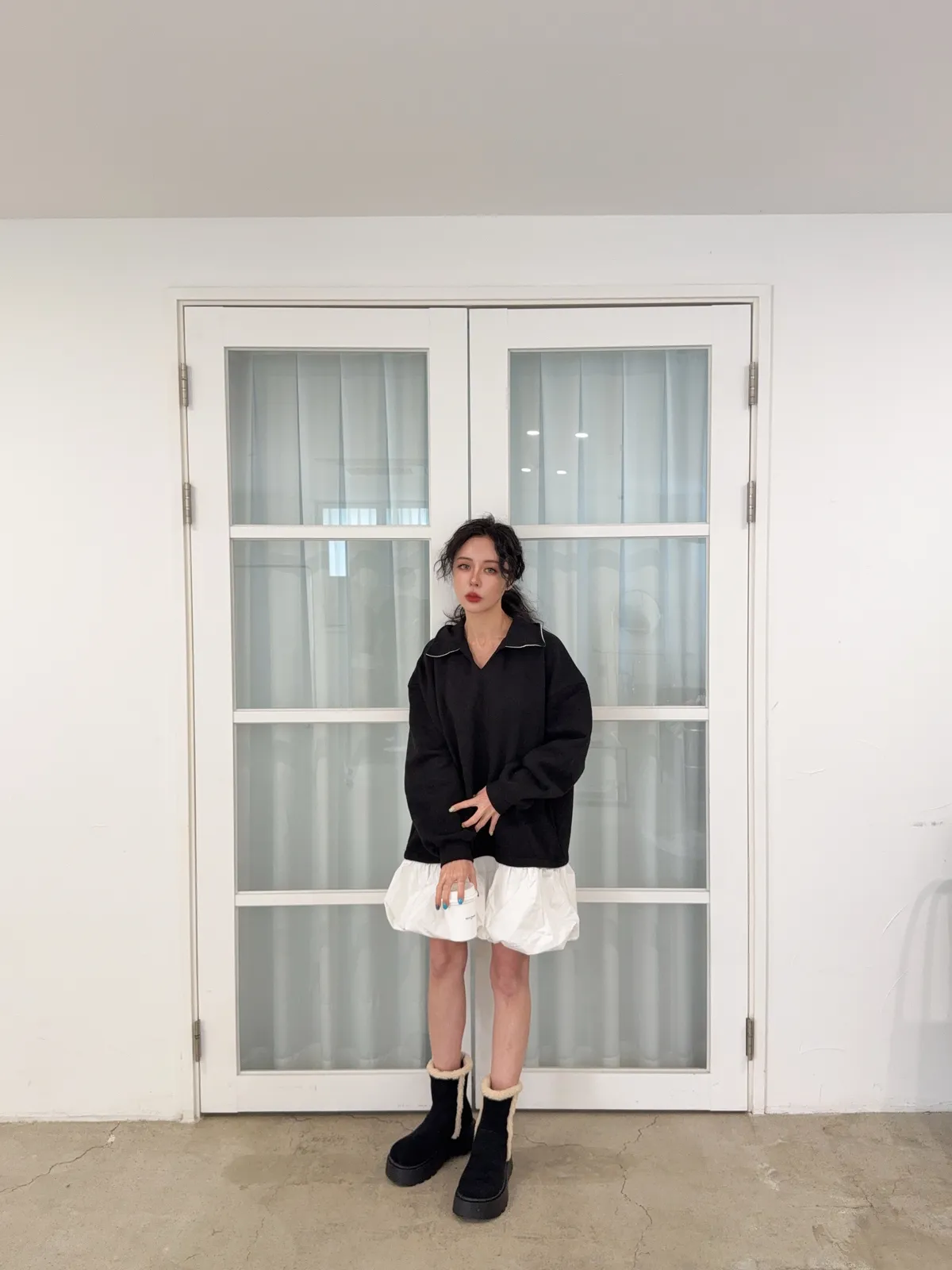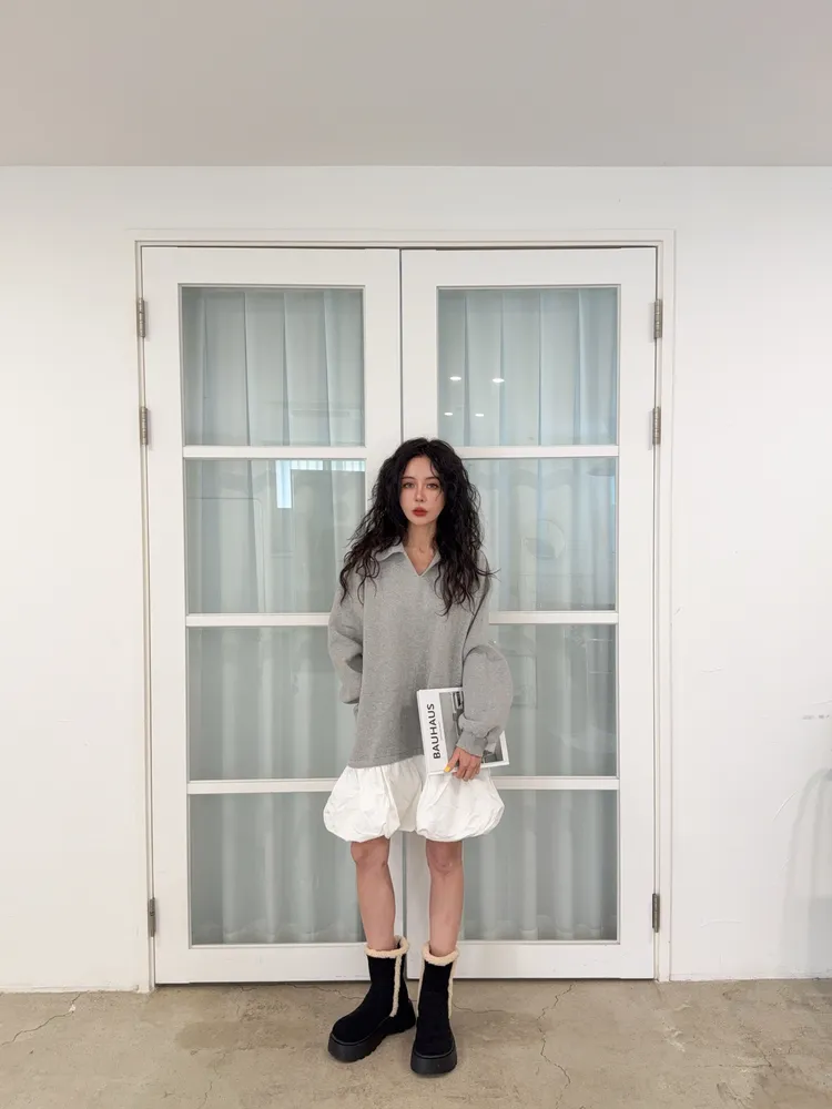 棉100%這款表面是帶絨的大學踢表面內裡有微微磨毛下擺的材質是那種絨面的襯衫材質等於是異材質拼接的一款洋裝最下擺的地方有內縫讓他有弧度因為拼接的地方偏下擺 所以不會感覺蓬蓬在屁股(不會顯胖)他是讓大腿的地方可以更加筆直的呈現 跟上面大學踢的地方相呼應不會上大下小可以仔細看一下影片就知道我在說什麼囉