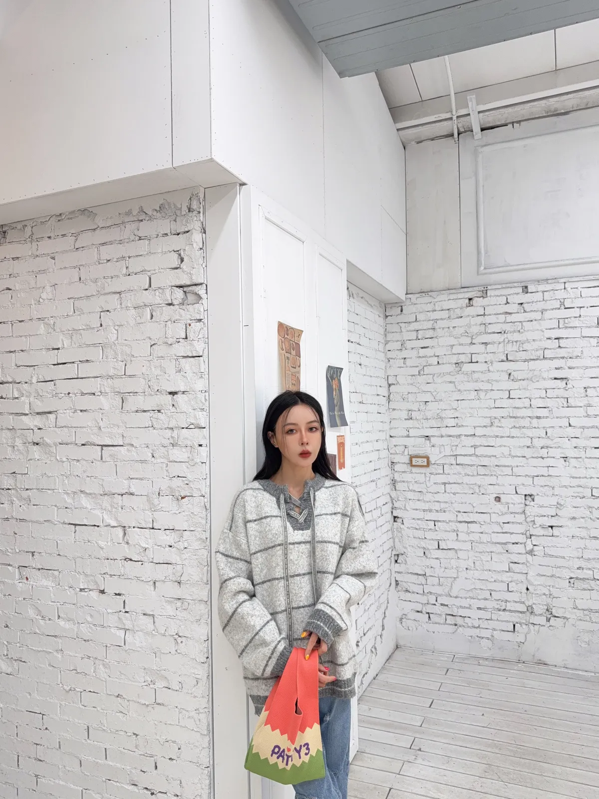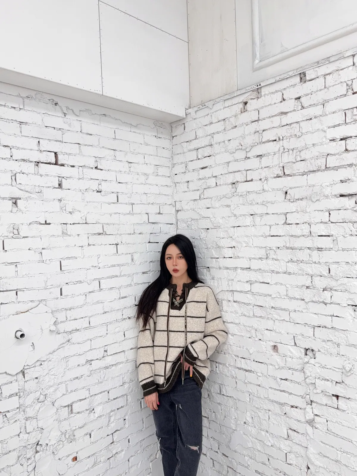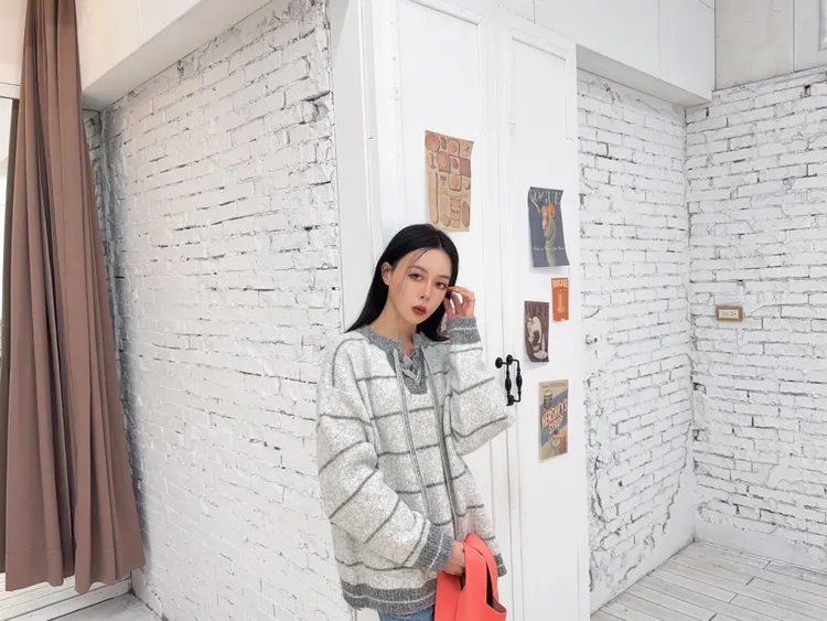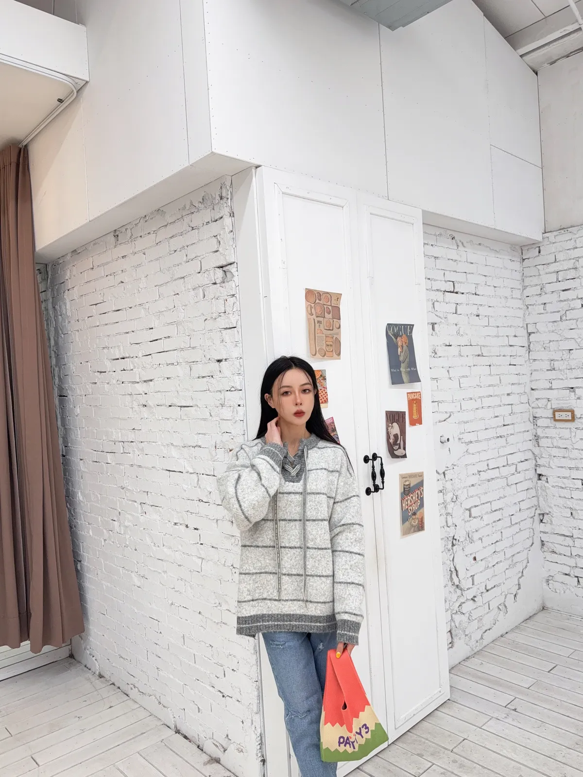 毛呢條紋當基底 觸感很好很舒服 不會整件毛呢貼在身上 很神奇