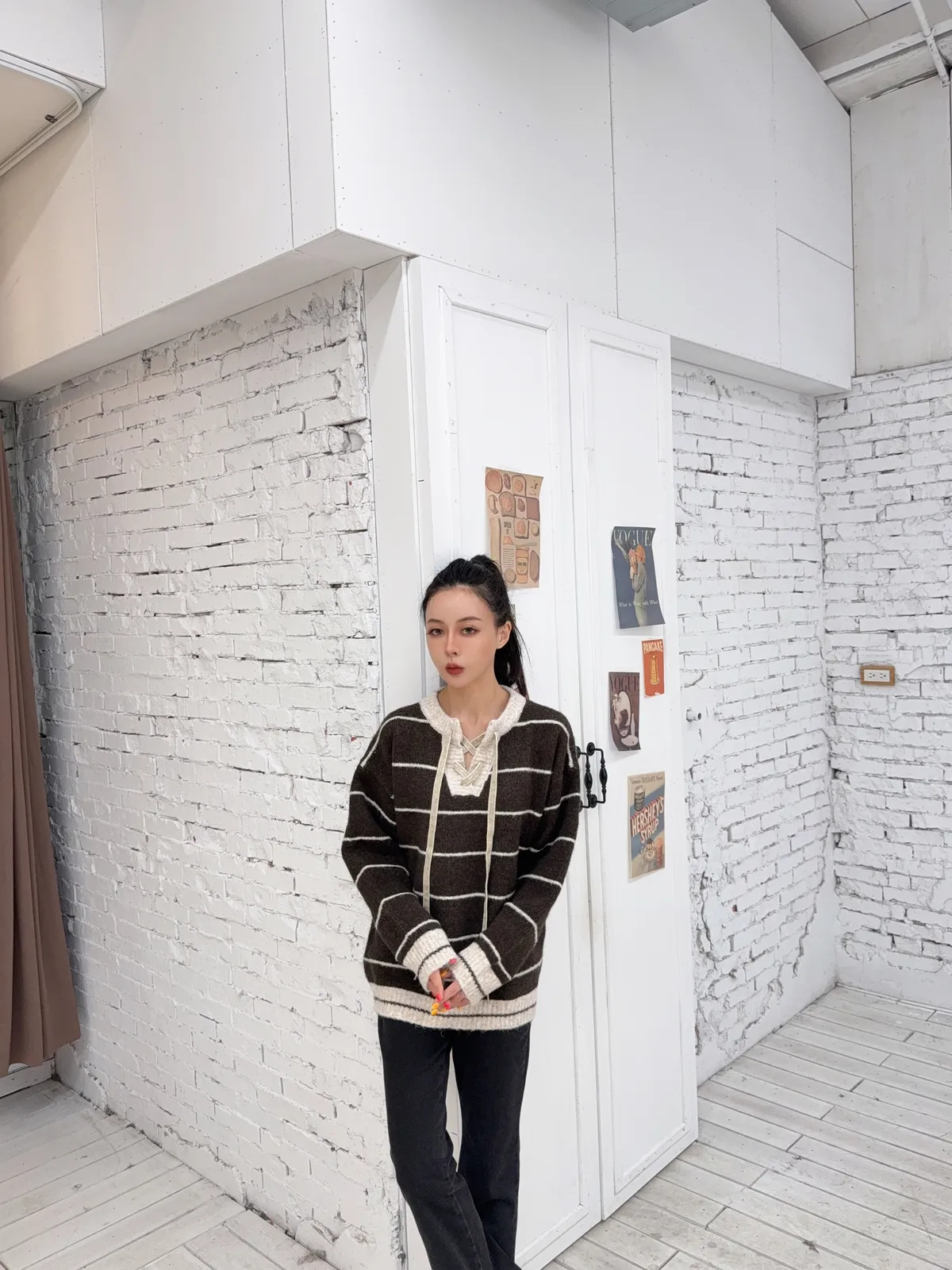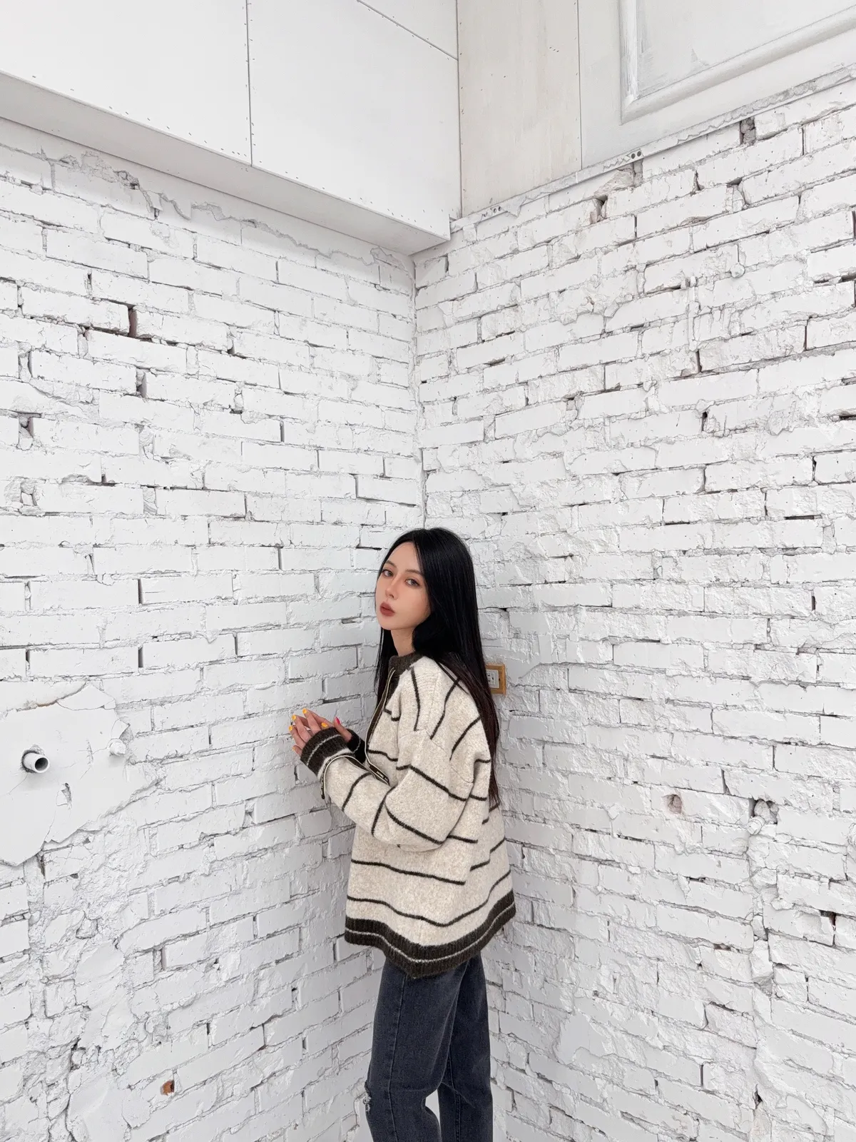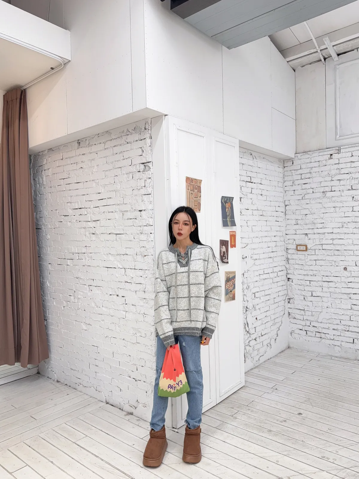 毛呢條紋當基底 觸感很好很舒服 不會整件毛呢貼在身上 很神奇