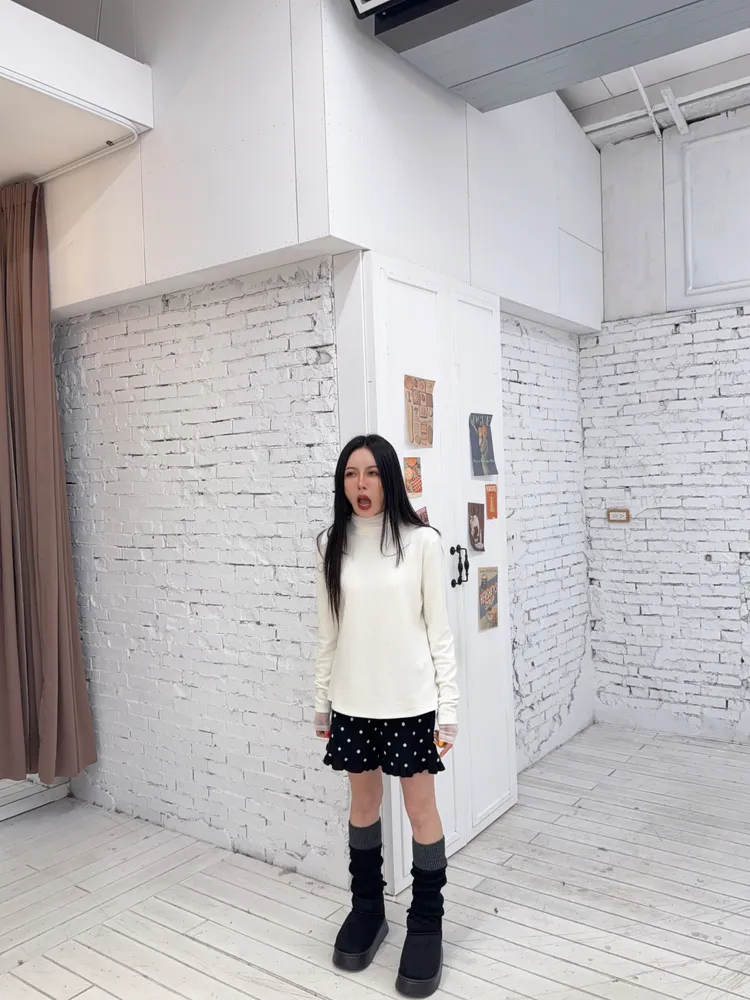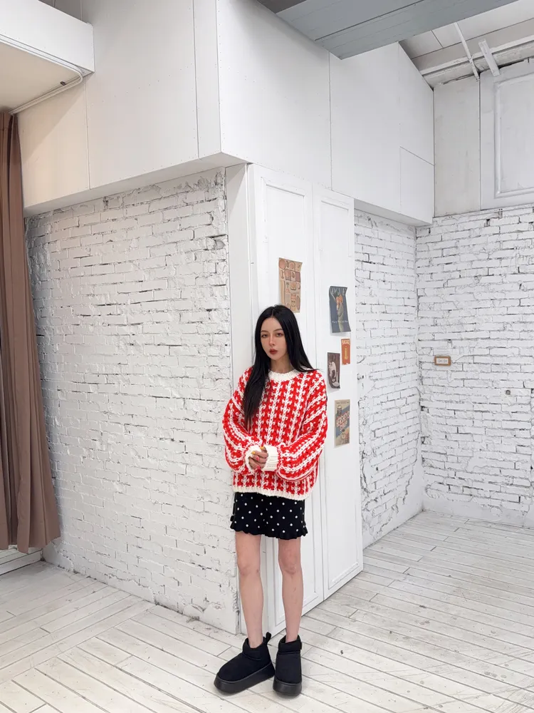 他的針織是挺度 厚度卻是相對扁的 所以很吃脂肪 不會穿上下半身腫腫的
