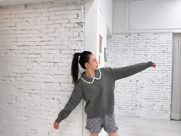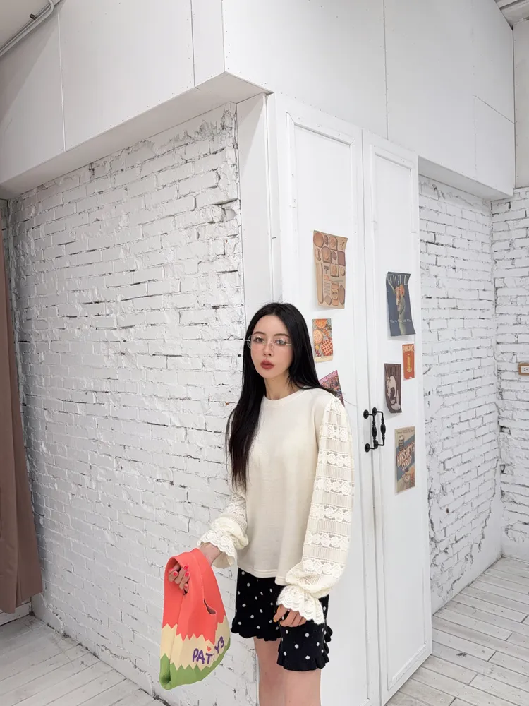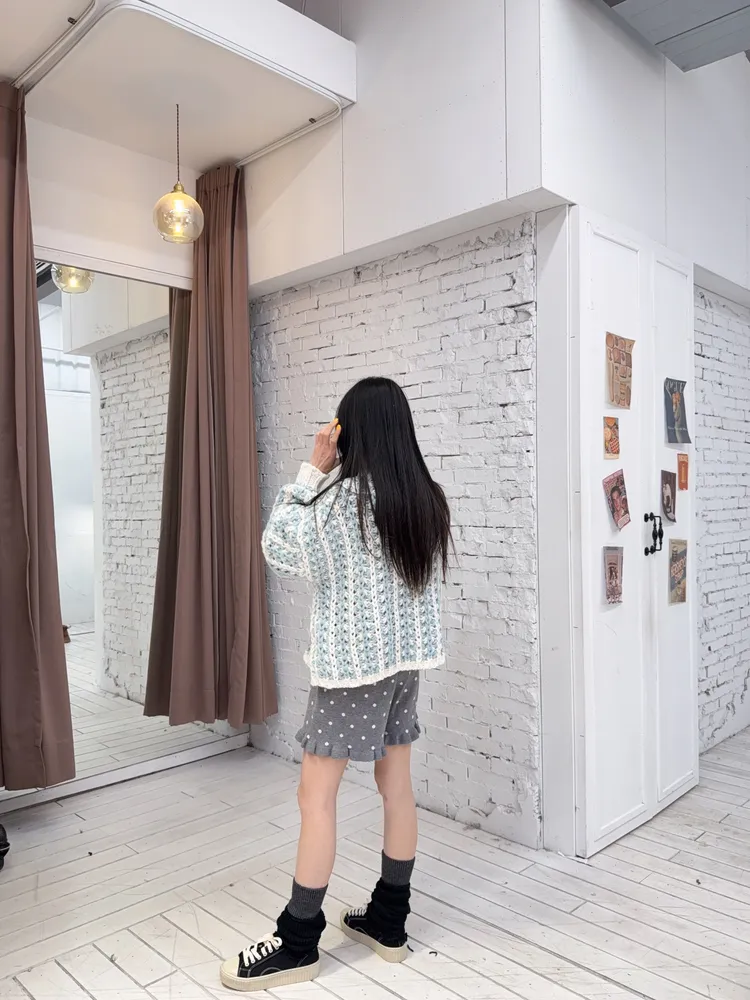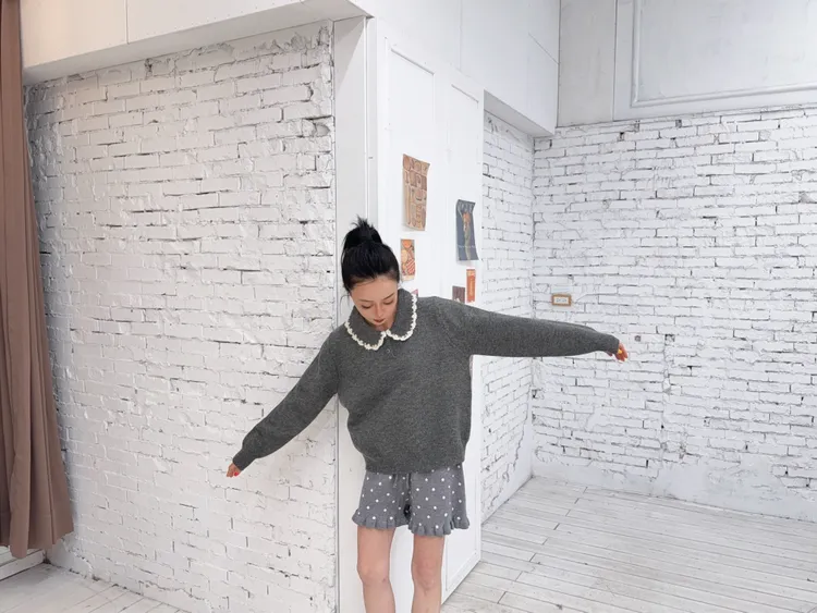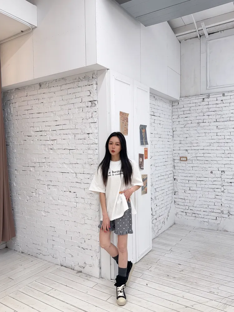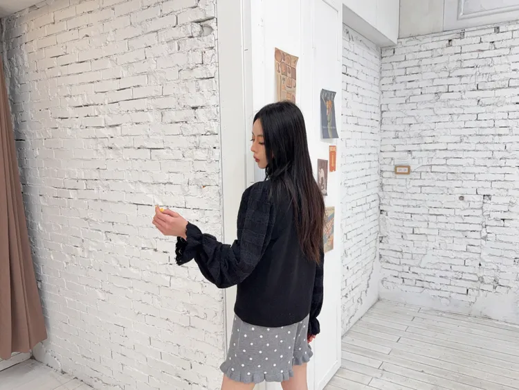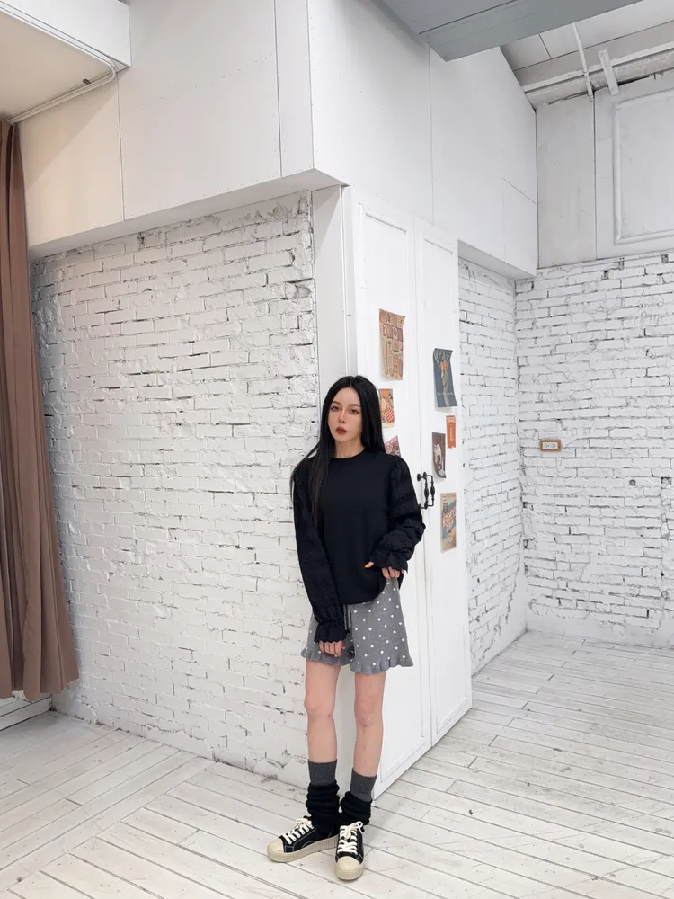 他還刻意多加了花邊 讓下擺有一點份量感 的呈現散擺 就不會內貼大腿