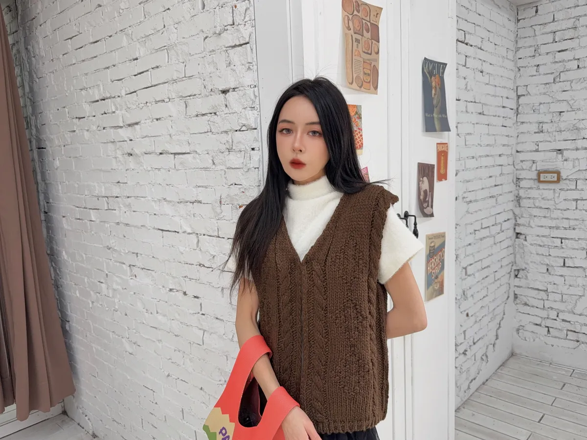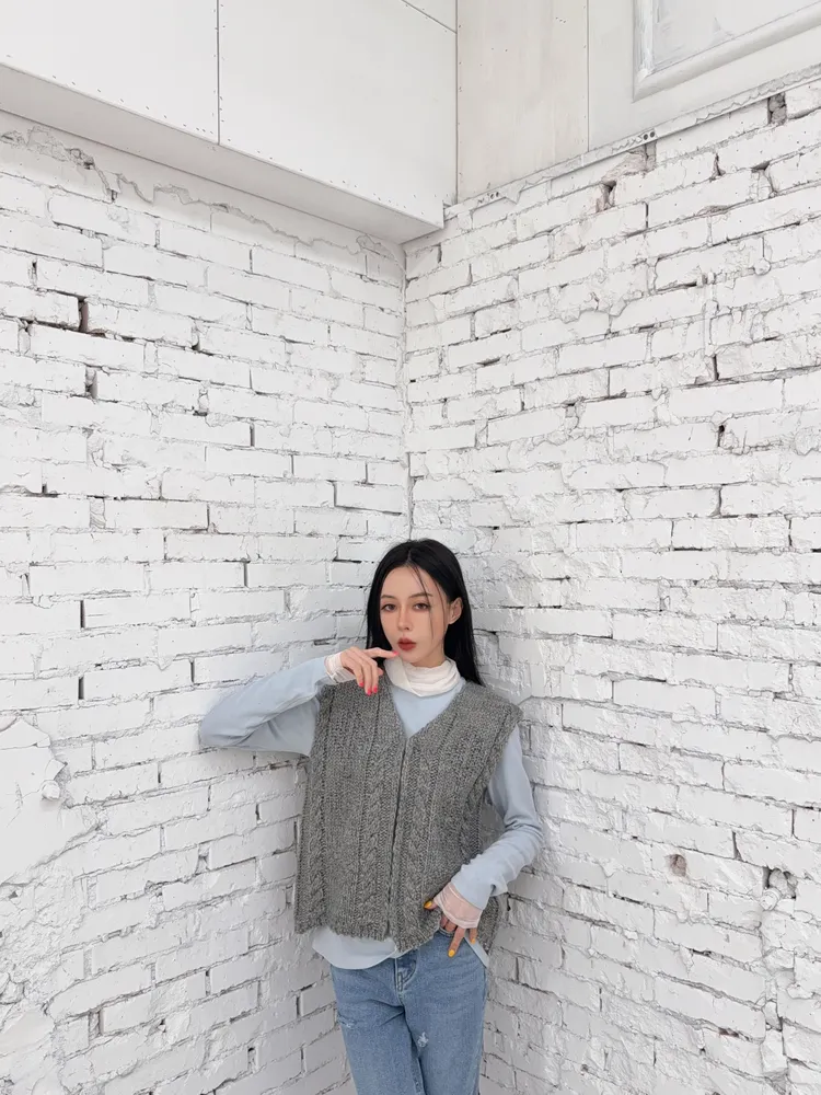而且這款麻花針織背心 相較一般常看到的 這款真的不會穿上很胖