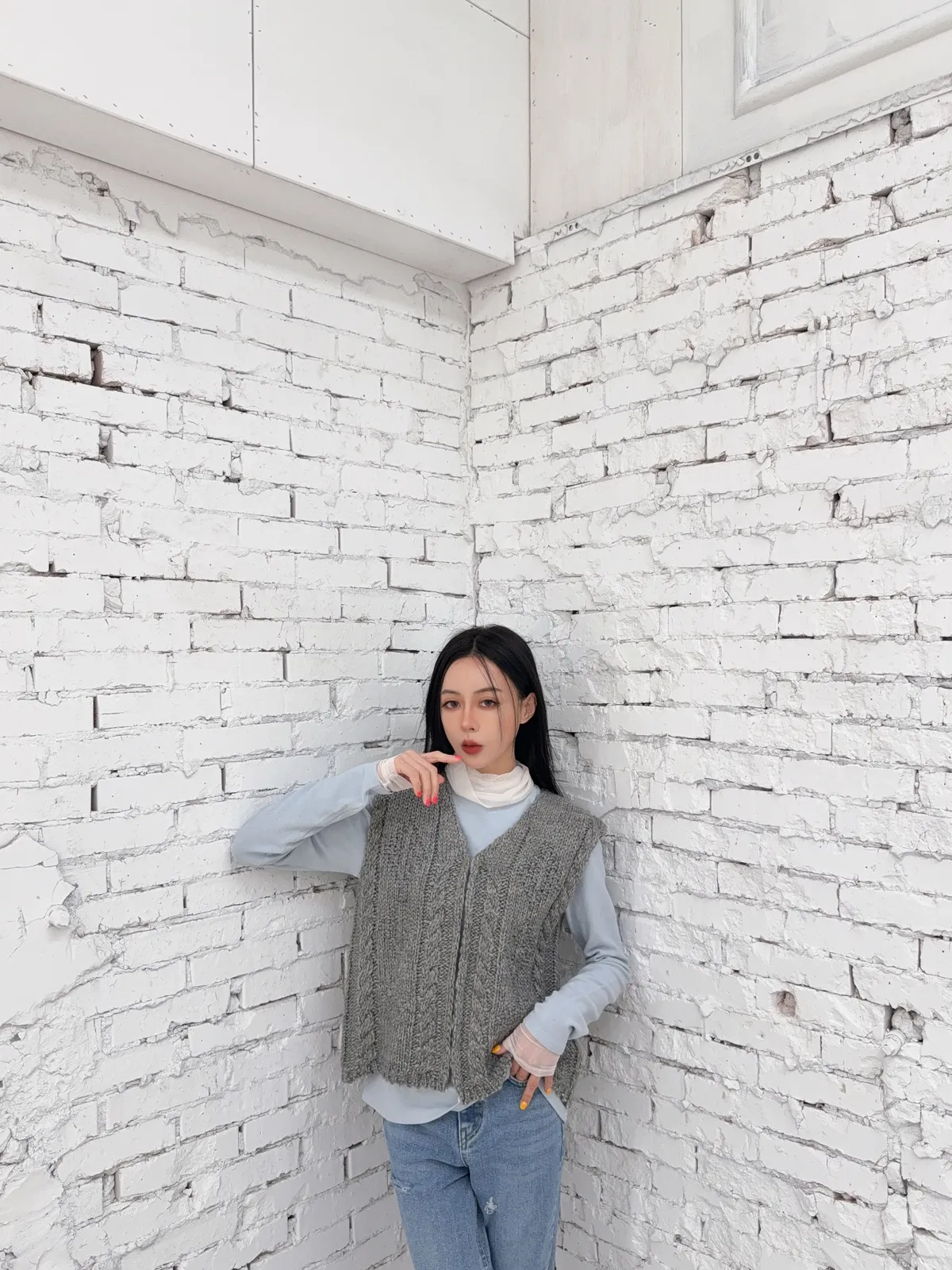 整個人的比值度很流暢 不會有一個硬梆梆針織背心在外面匡著的感覺