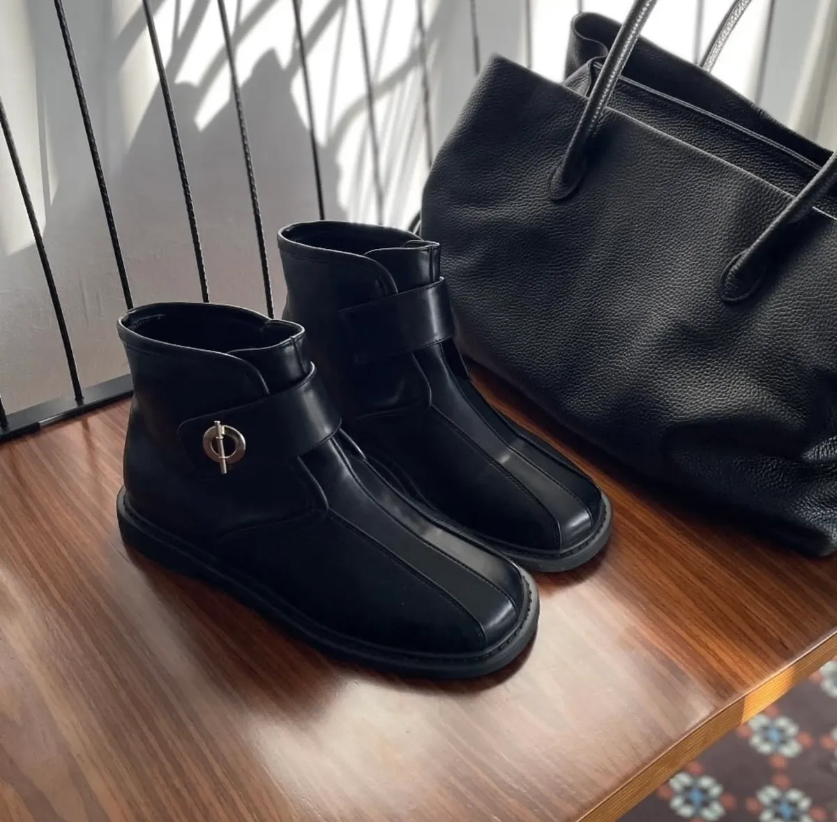 這款帥氣短靴 她的皮革摸起來就知道是有質感的