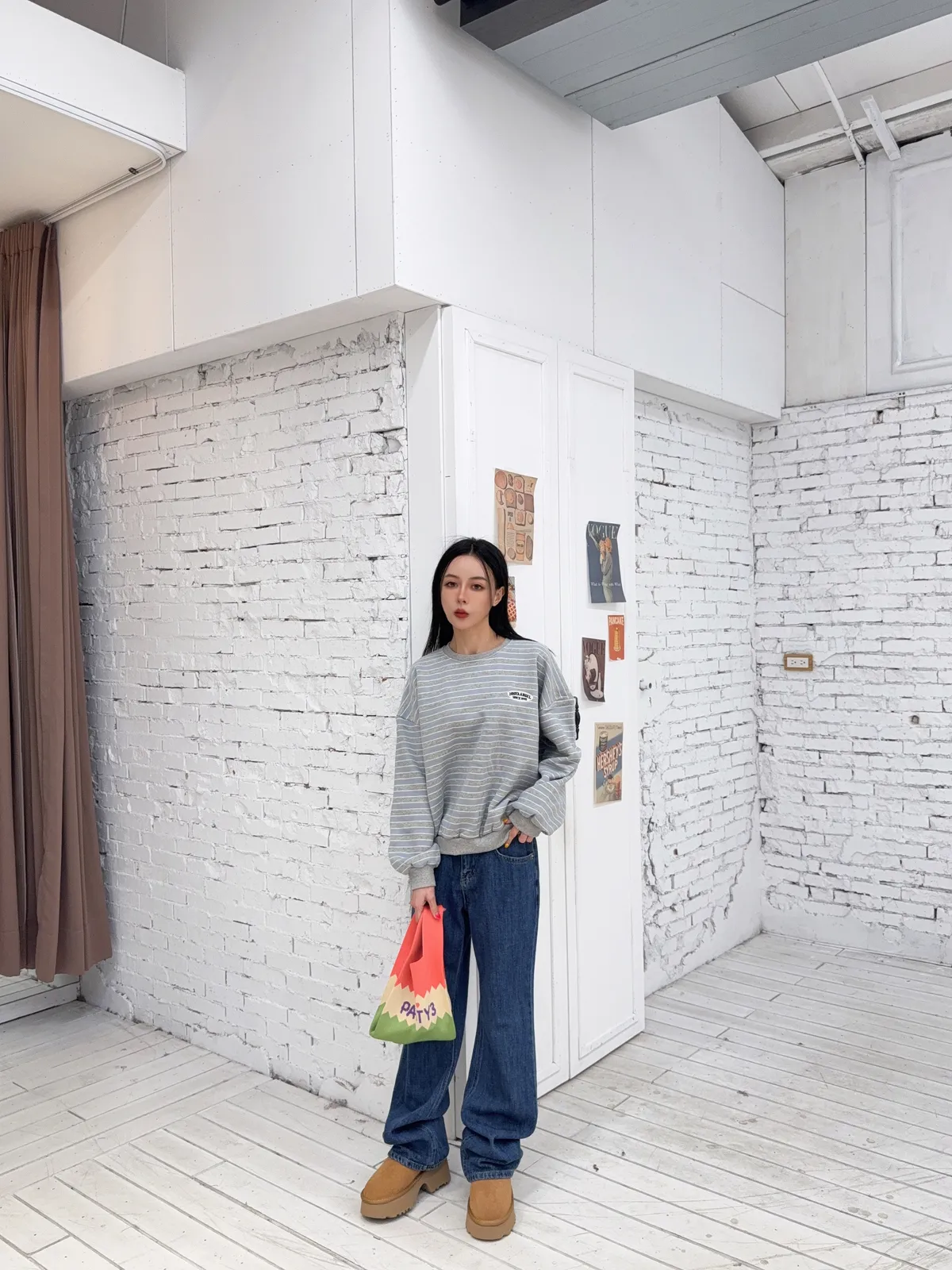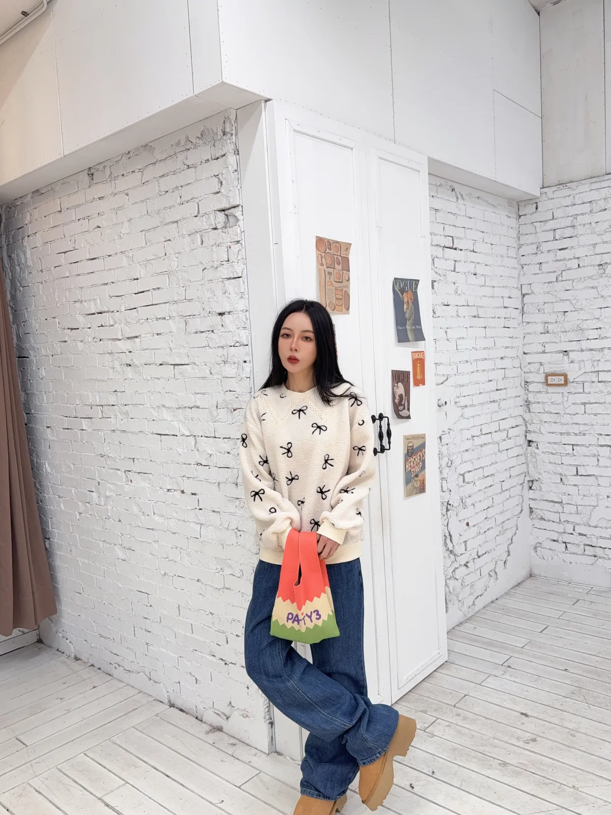 因為大腿也是寬鬆的 小腿下面只是一點點微喇叭感的剪裁 不是上面大貼腿的喇叭感哦