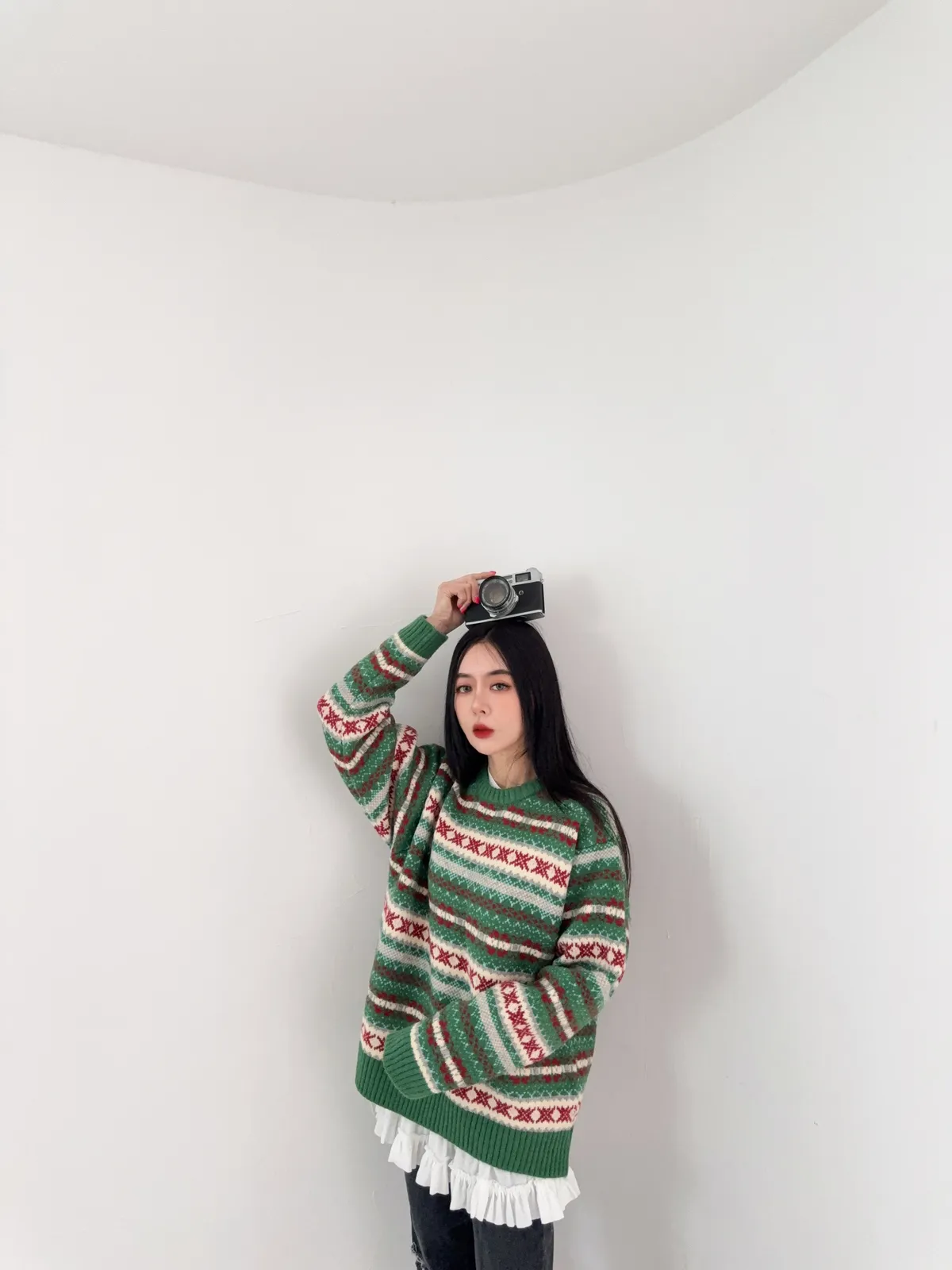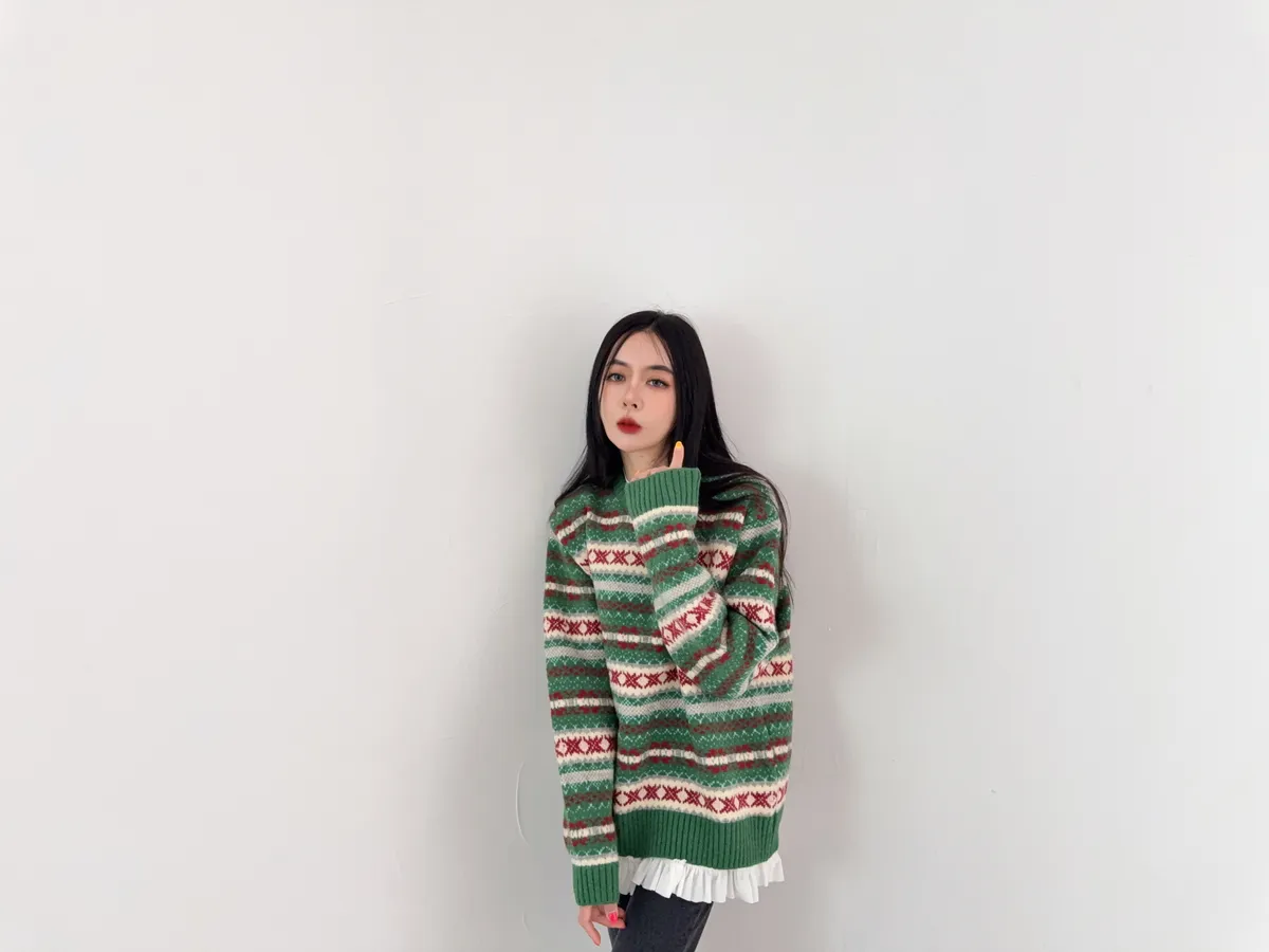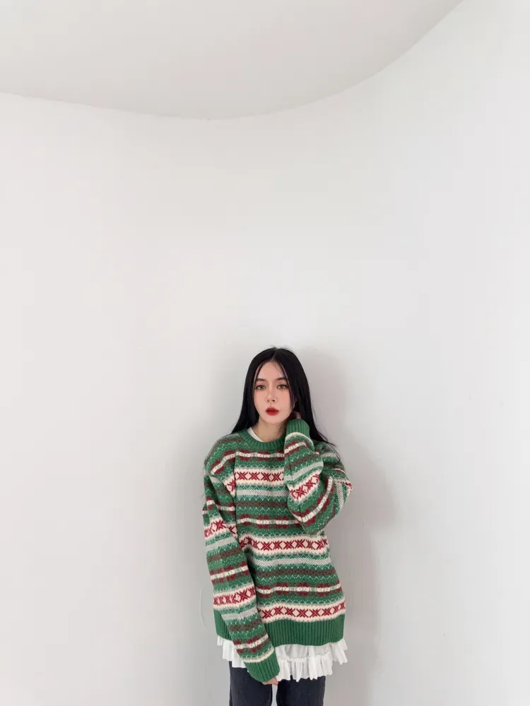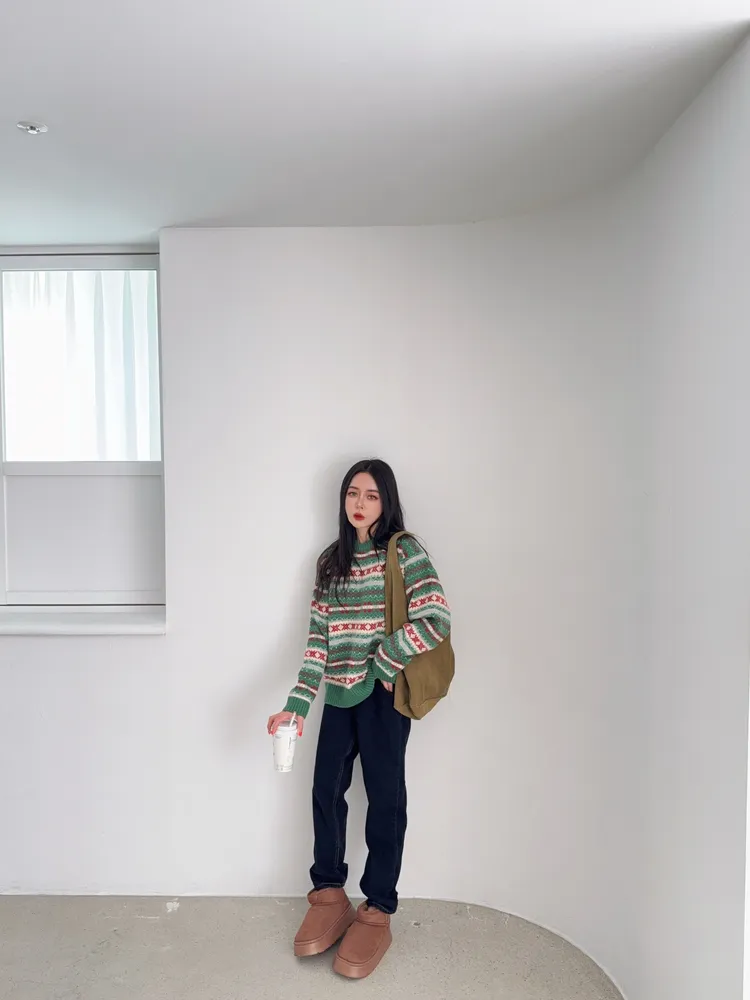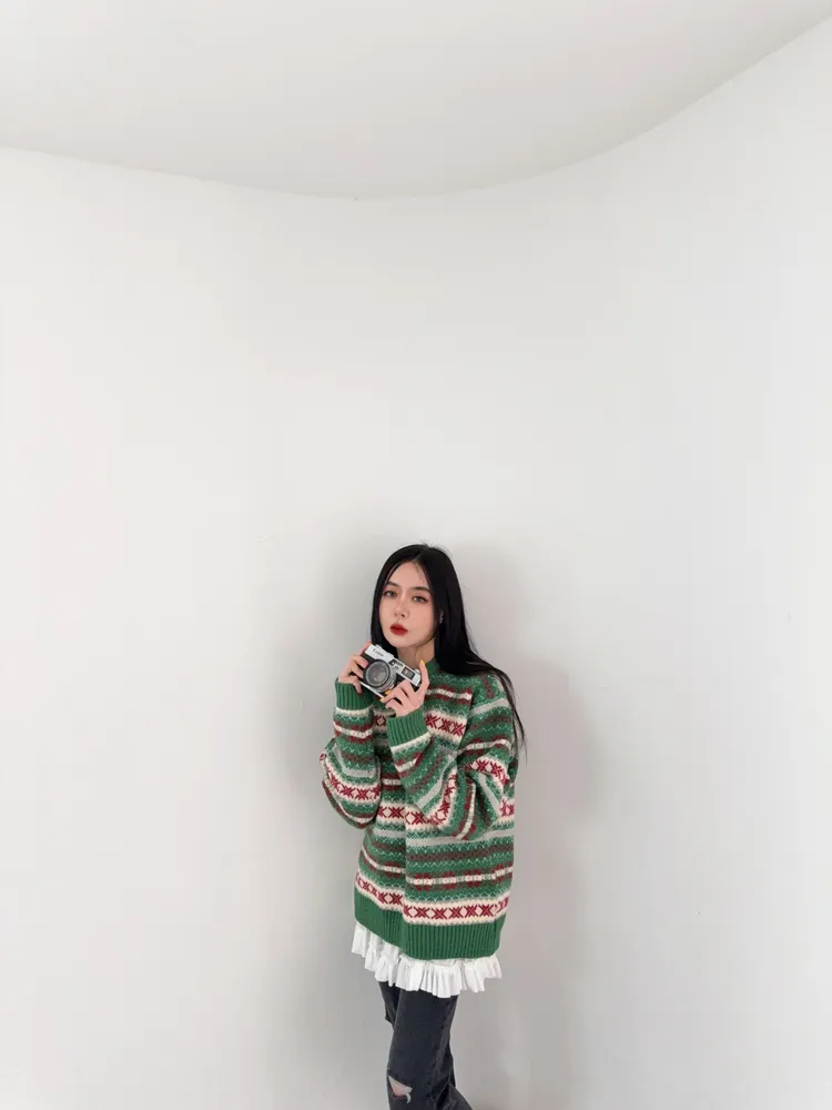 雖然綠色的配色很有聖誕感 但完全沒有聖誕節圖案 不會過了節日就不敢穿