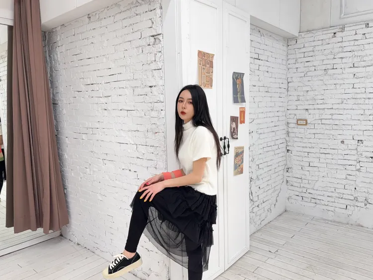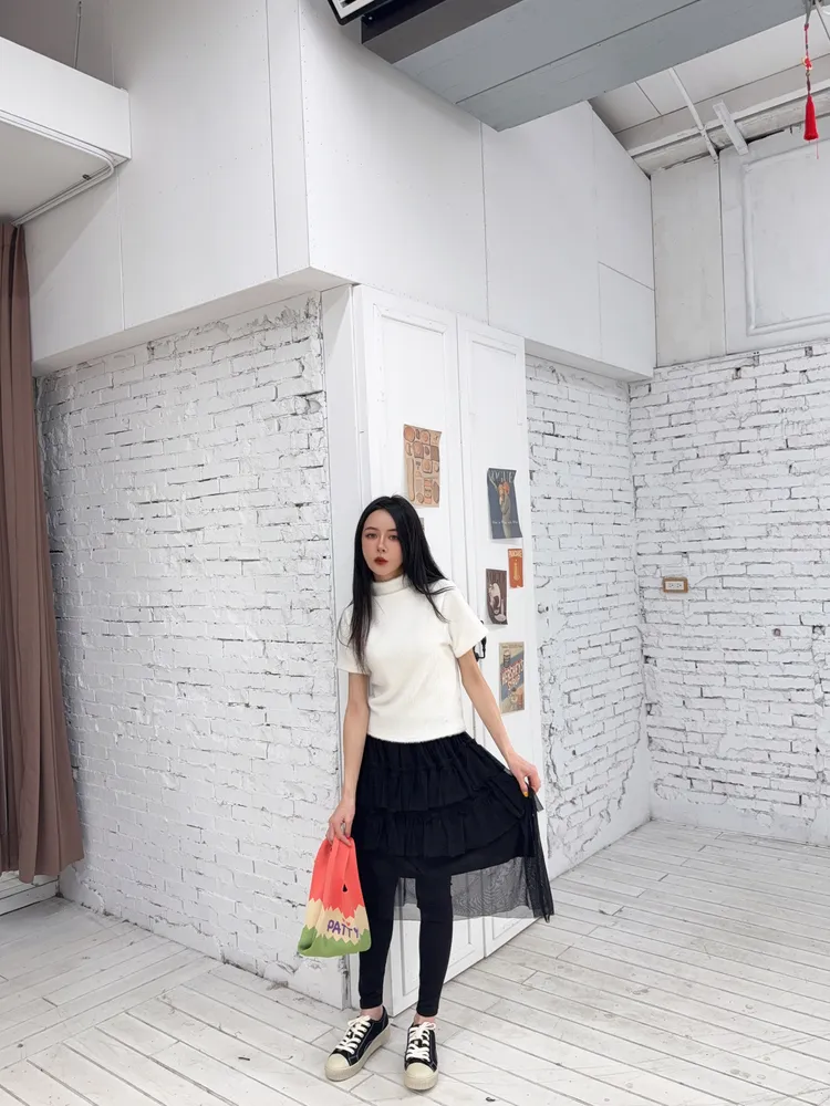 我可以直接反摺一摺裙頭 就能讓紗裙短一點