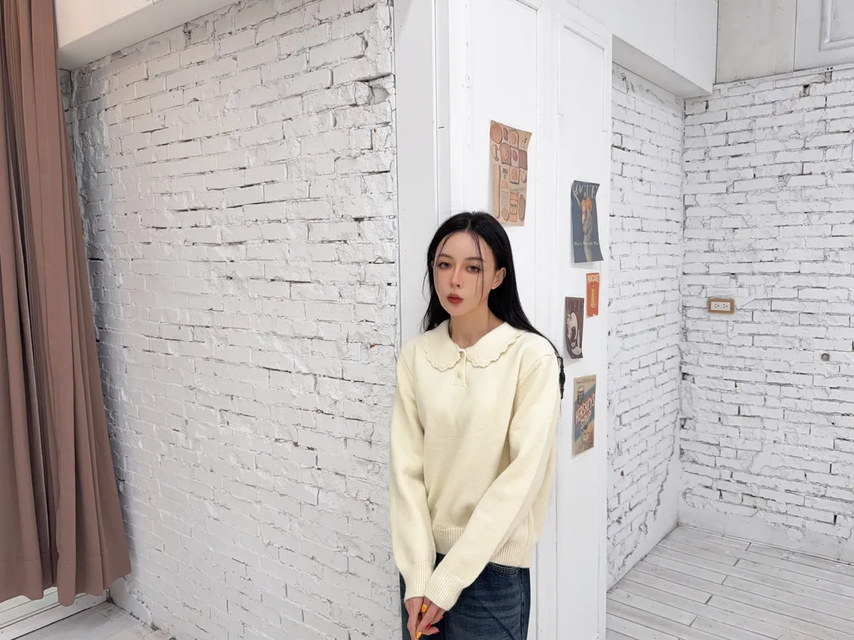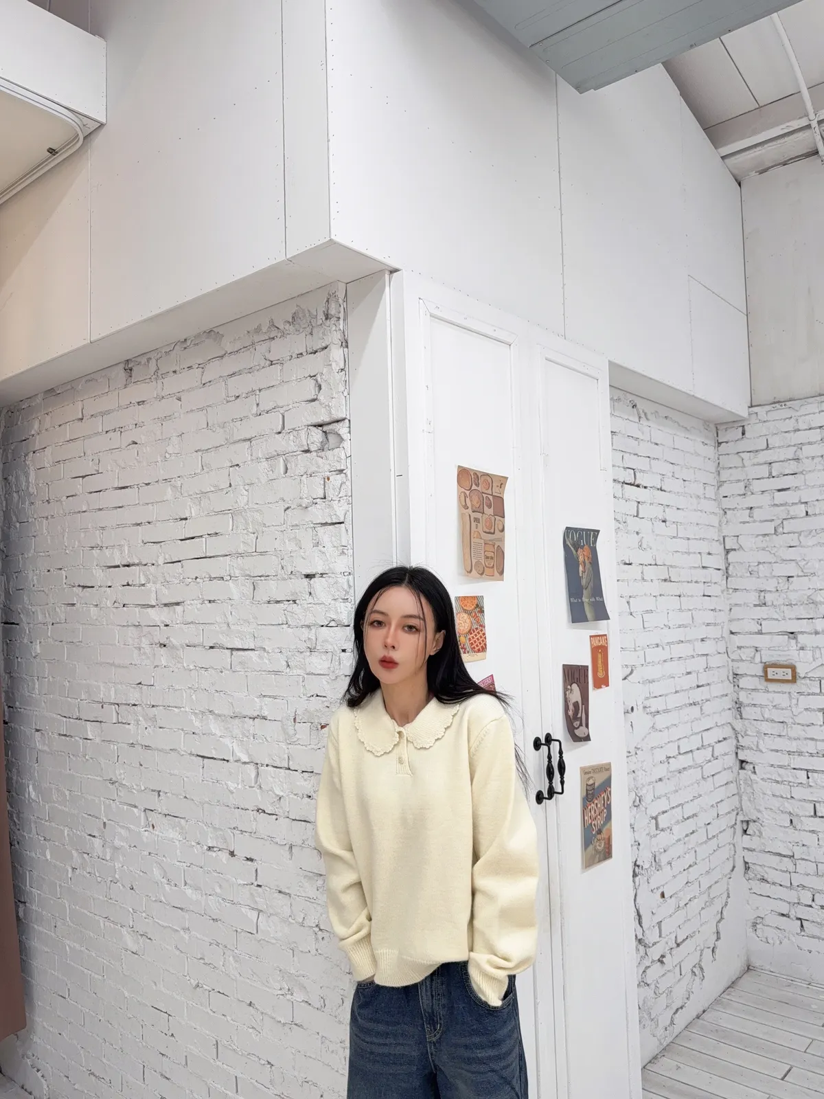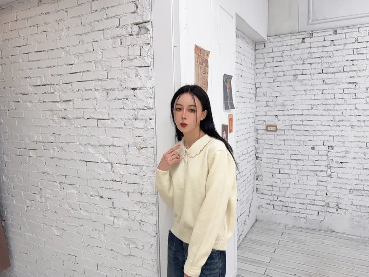 簡簡單單的一款有領密鉤織上衣 超級好搭配 又超瘦