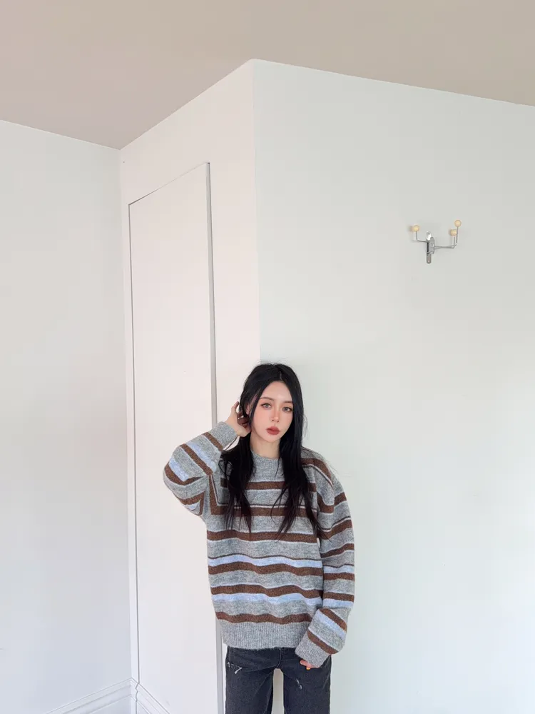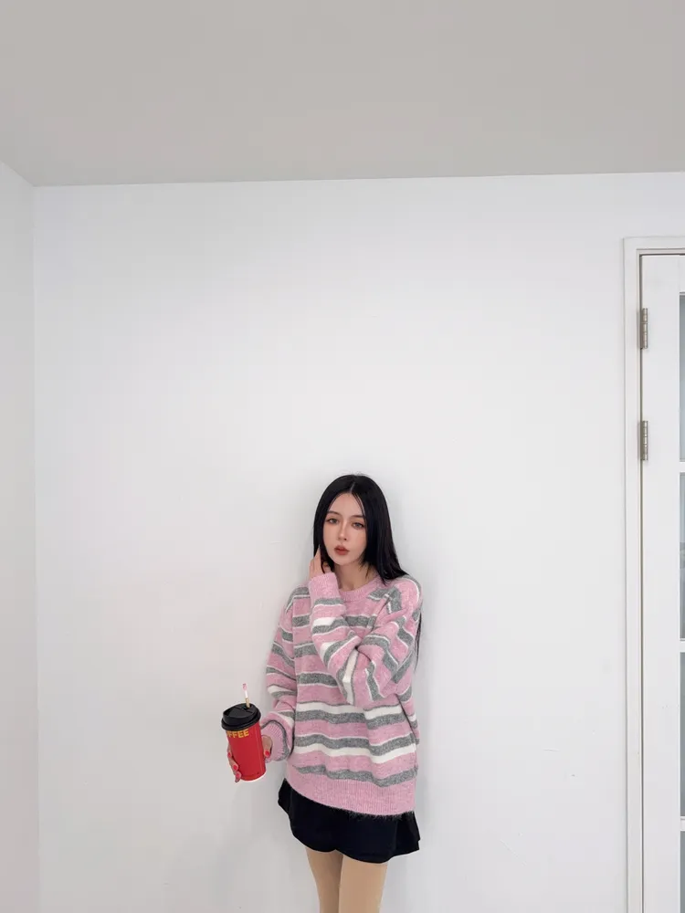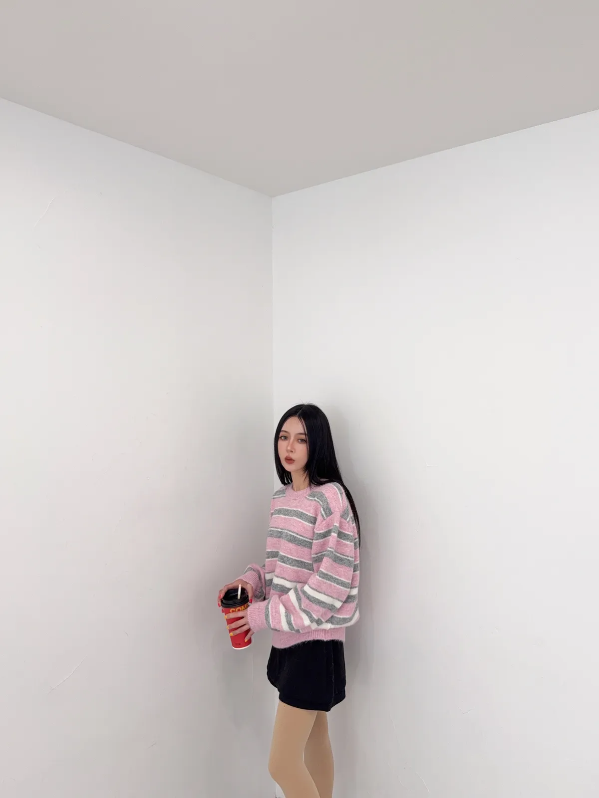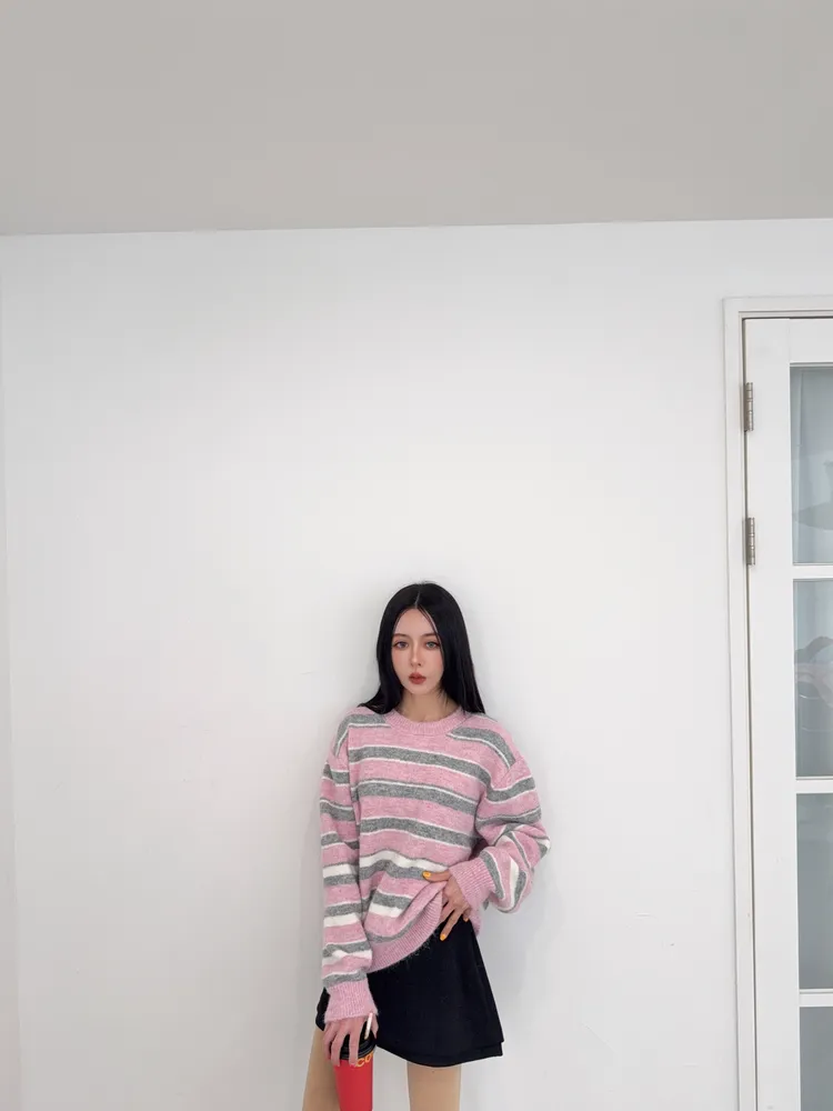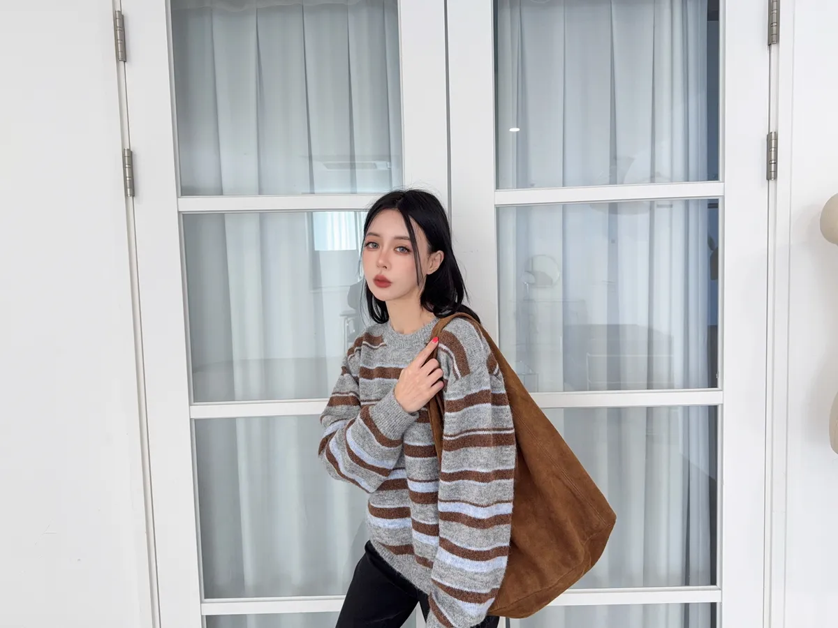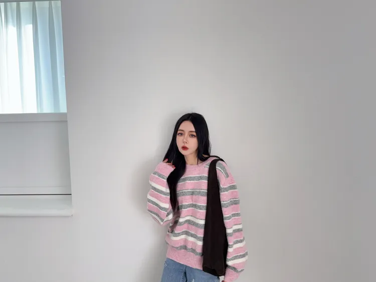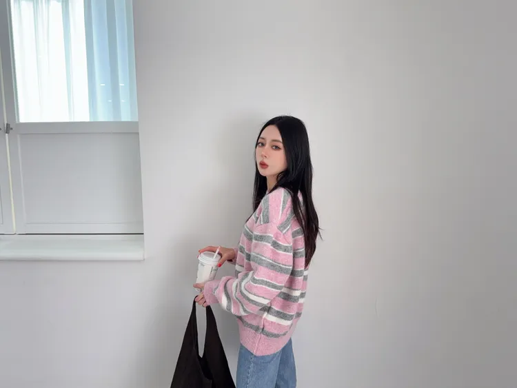 讓一件平凡的條紋毛衣視覺效果覺得很特別