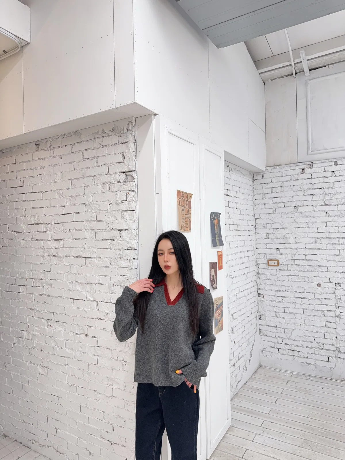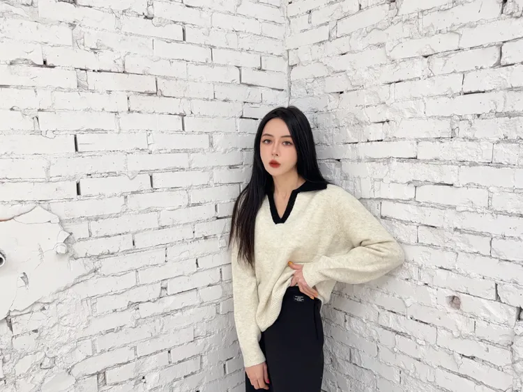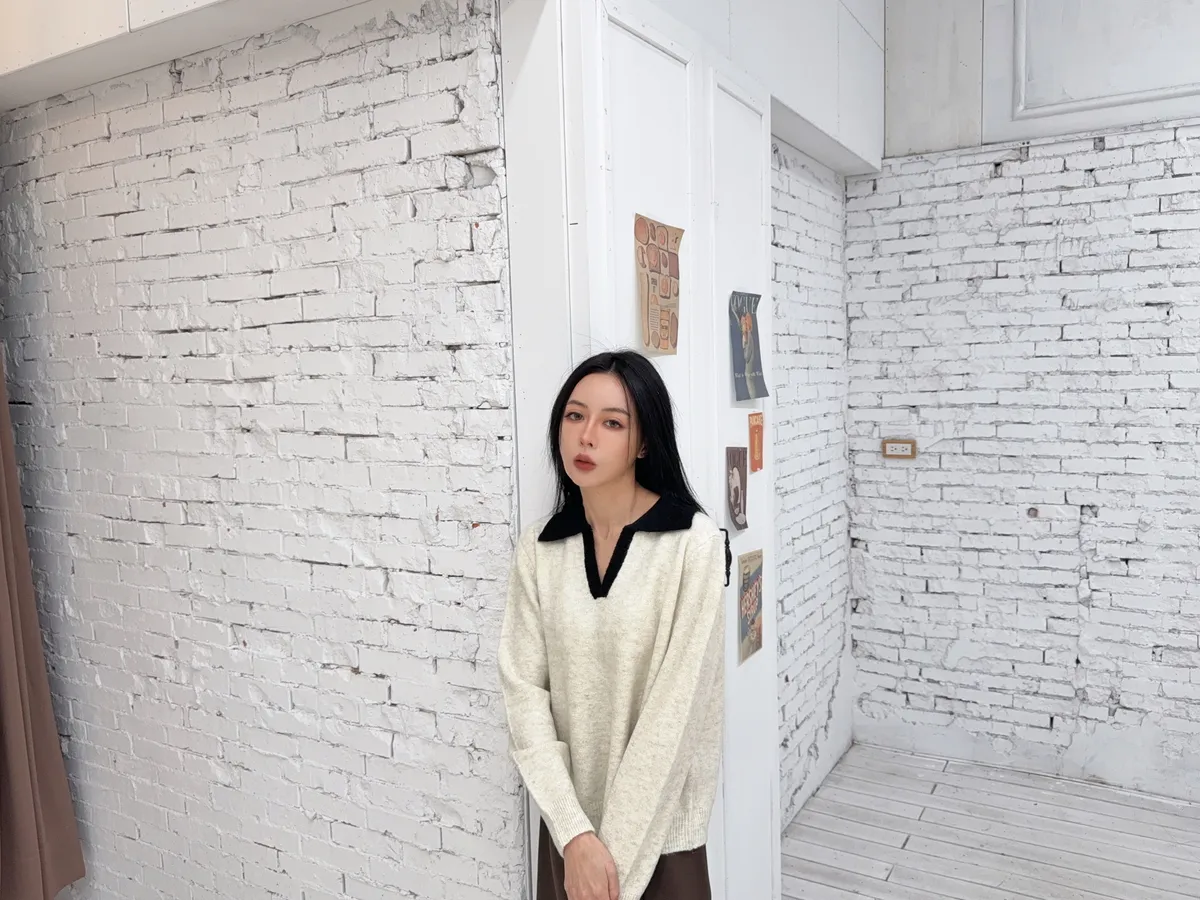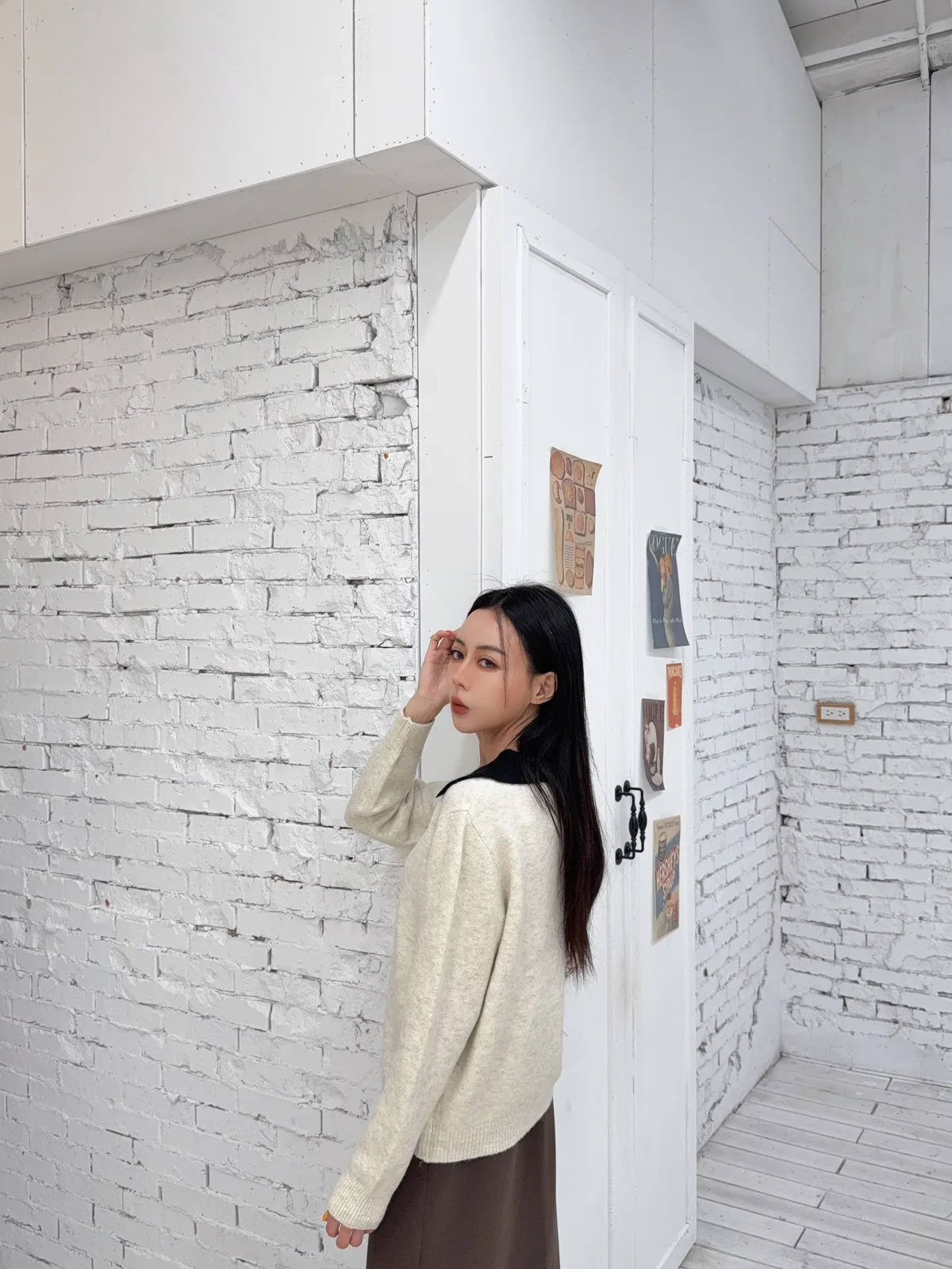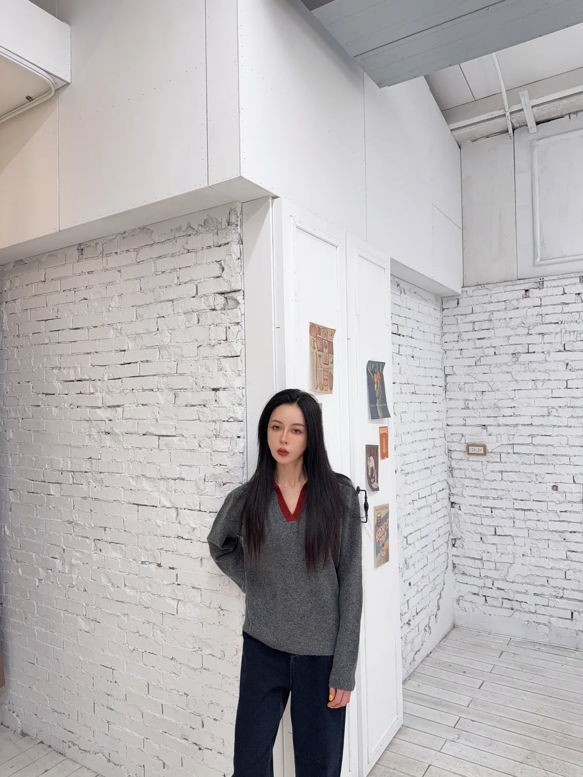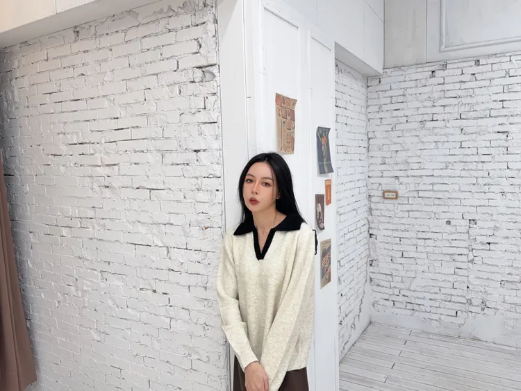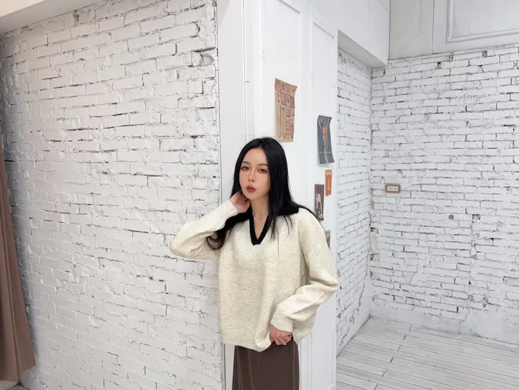 聚酯纖維95%尼龍5%這種薄薄的毛呢上衣 如果不加點創意就會淪為一般虧金剛戰士家想得出來把他的領口變成撞色還故意設計領口又開V讓這種薄毛呢瞬間不無聊又百搭這款薄軟毛呢你看淺色 他還故意有設計一個雲彩感深灰色就看不出那個暈染感薄薄的毛呢 配上最特別的領口這邊巧思 讓一款薄毛衣簡約卻不失特色哦
