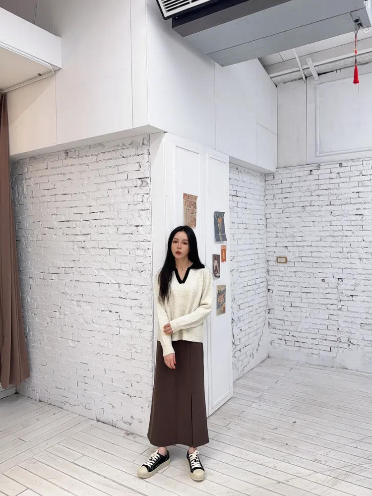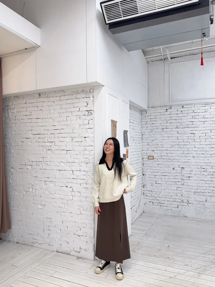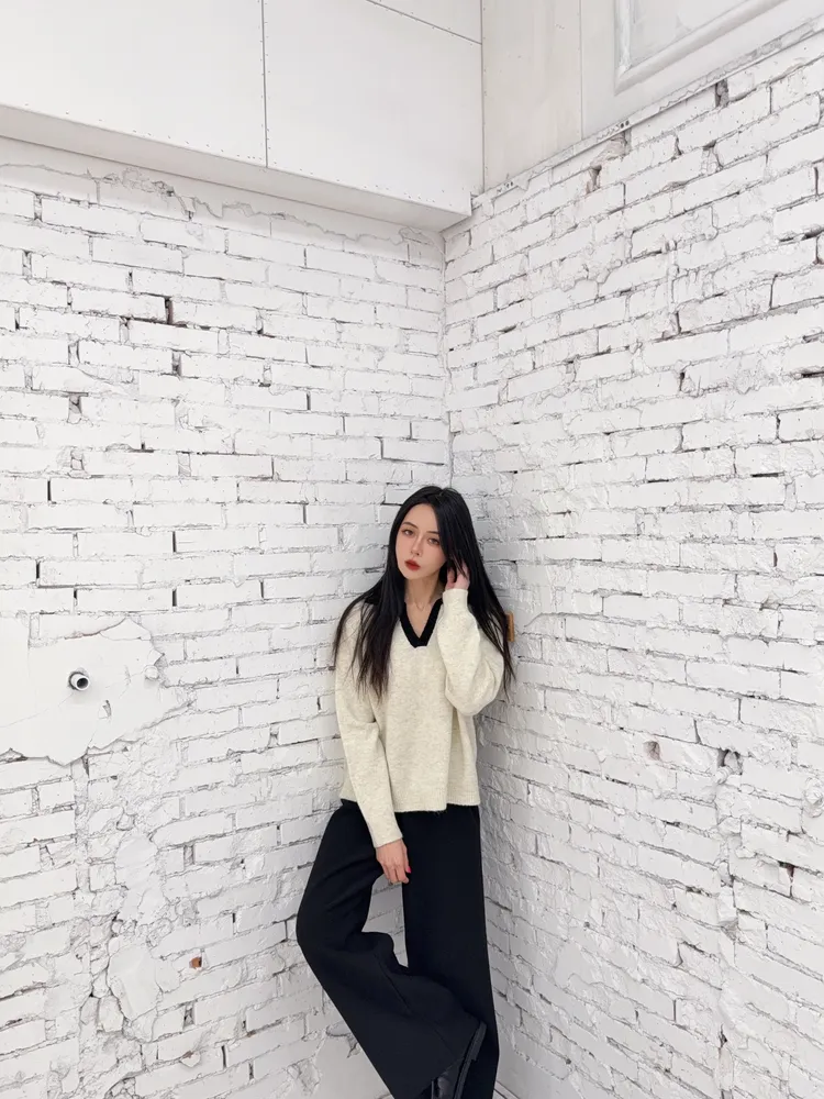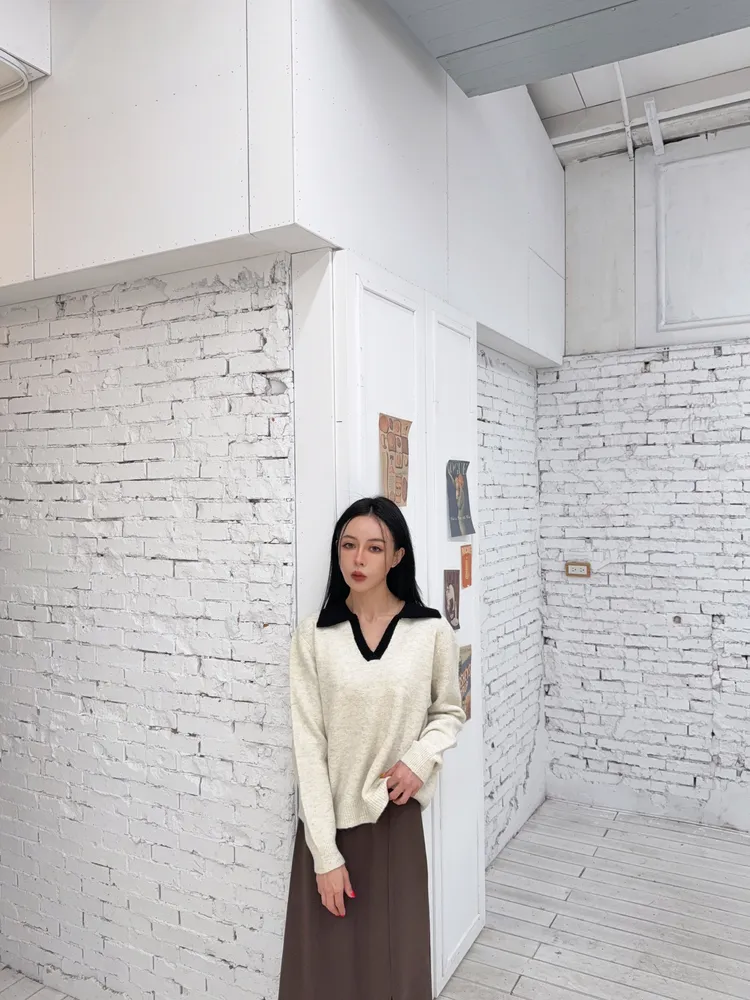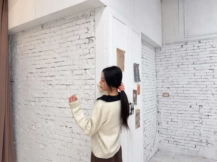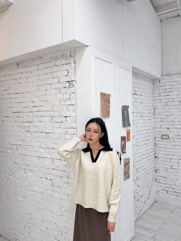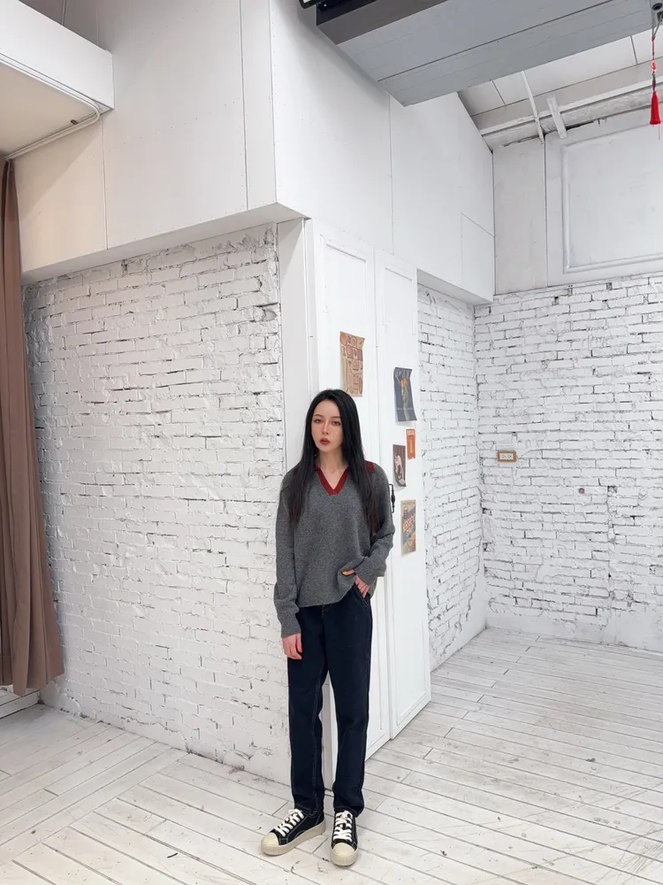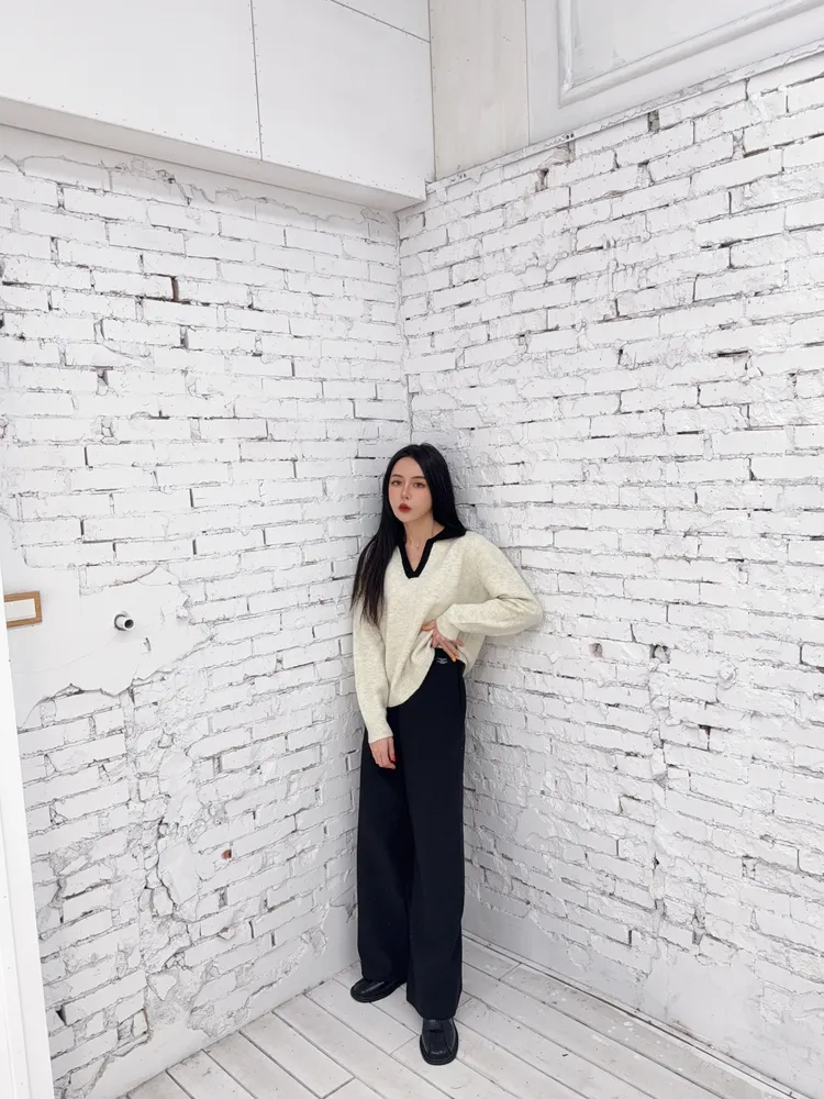 聚酯纖維95%尼龍5%這種薄薄的毛呢上衣 如果不加點創意就會淪為一般虧金剛戰士家想得出來把他的領口變成撞色還故意設計領口又開V讓這種薄毛呢瞬間不無聊又百搭這款薄軟毛呢你看淺色 他還故意有設計一個雲彩感深灰色就看不出那個暈染感薄薄的毛呢 配上最特別的領口這邊巧思 讓一款薄毛衣簡約卻不失特色哦