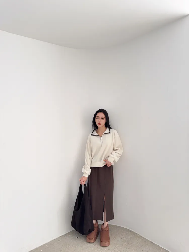 金剛戰士他們家這次這款壓縮薄毛呢上衣 搭配拉鍊這個五金讓這款薄毛呢上衣多了精神誒簡簡單單的基底 用拉鍊做了一個點綴你可以自己把拉鍊決定位置開的高低 營造不同的帥氣俐落度這種薄毛呢就類似百搭的T的概念全素面 沒有什麼花樣怎麼配的邏輯你下半身抓到什麼基本上都能配成套簡單百搭系的金剛戰士還要猶豫嗎