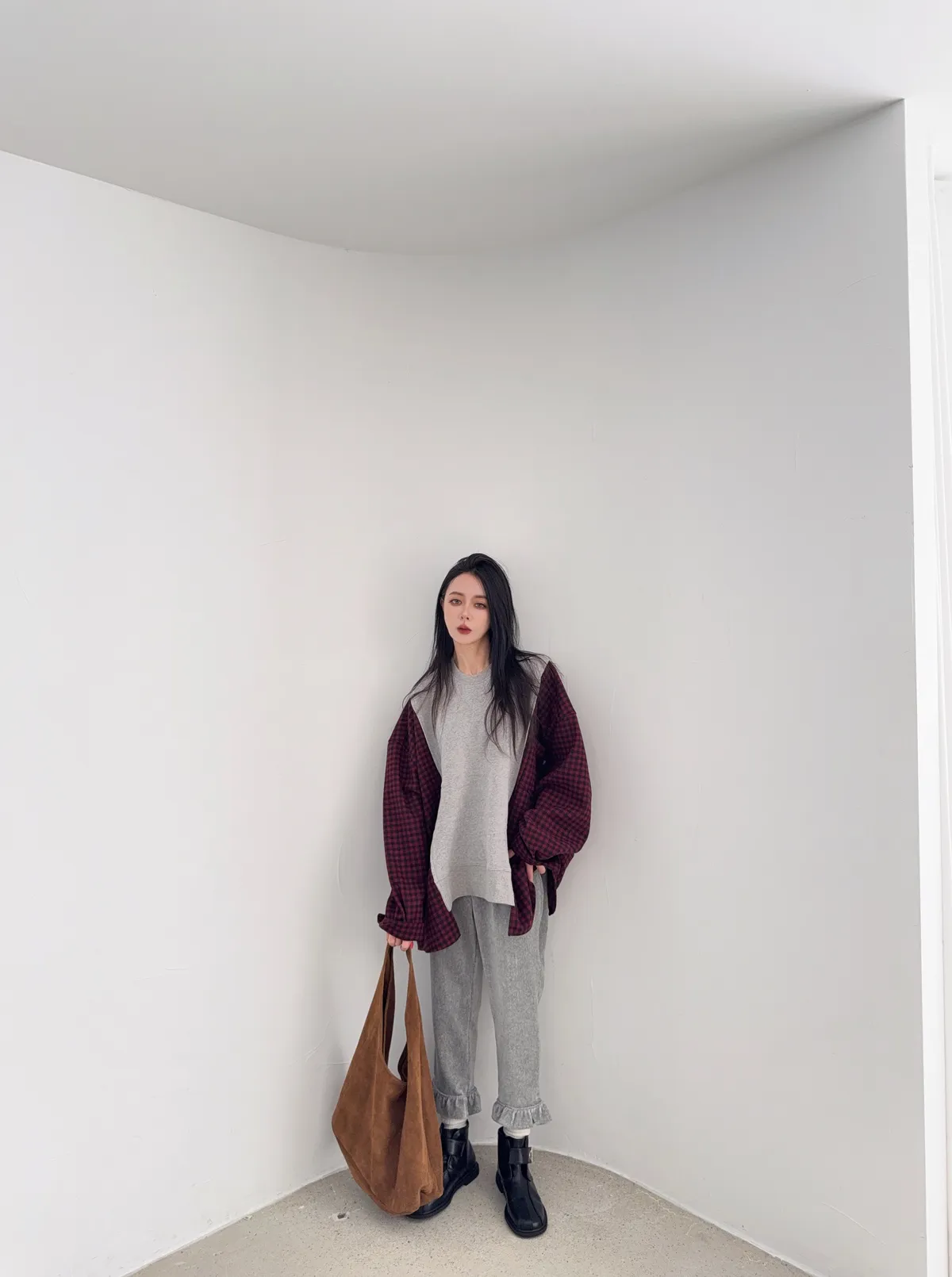 另外這款格紋的地方是毛料的材質 這個地方如果我裡面只有皮膚