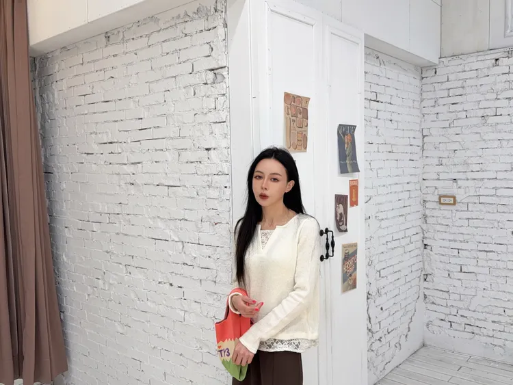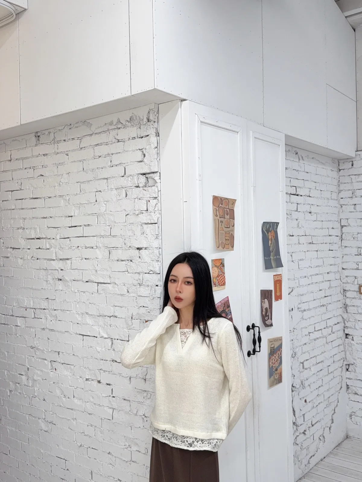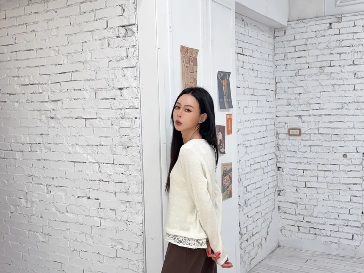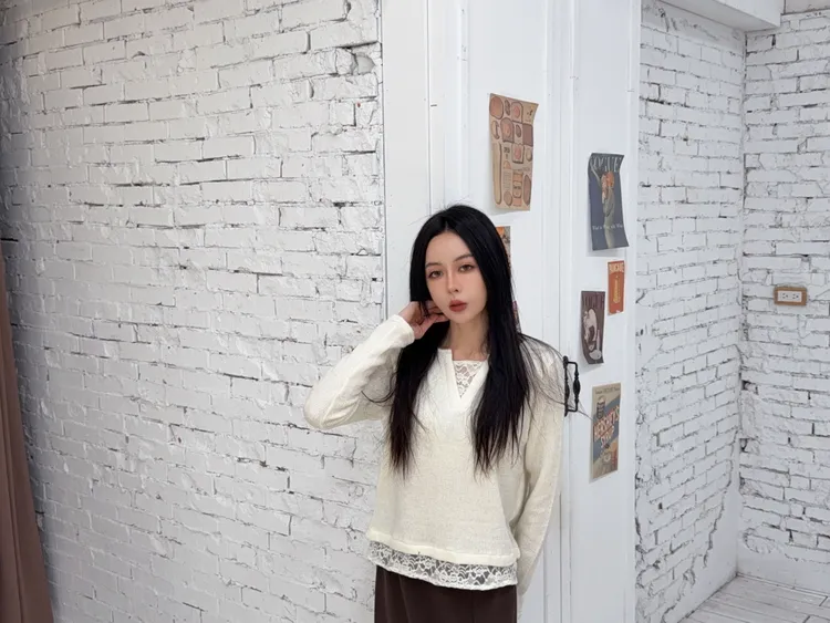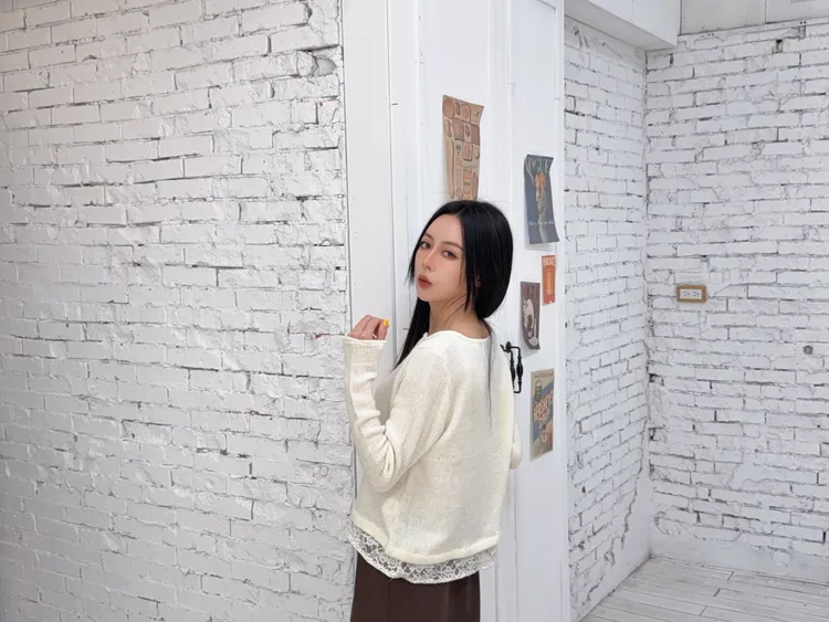 下擺跟領口拼接的白蕾絲 更是一大巧思