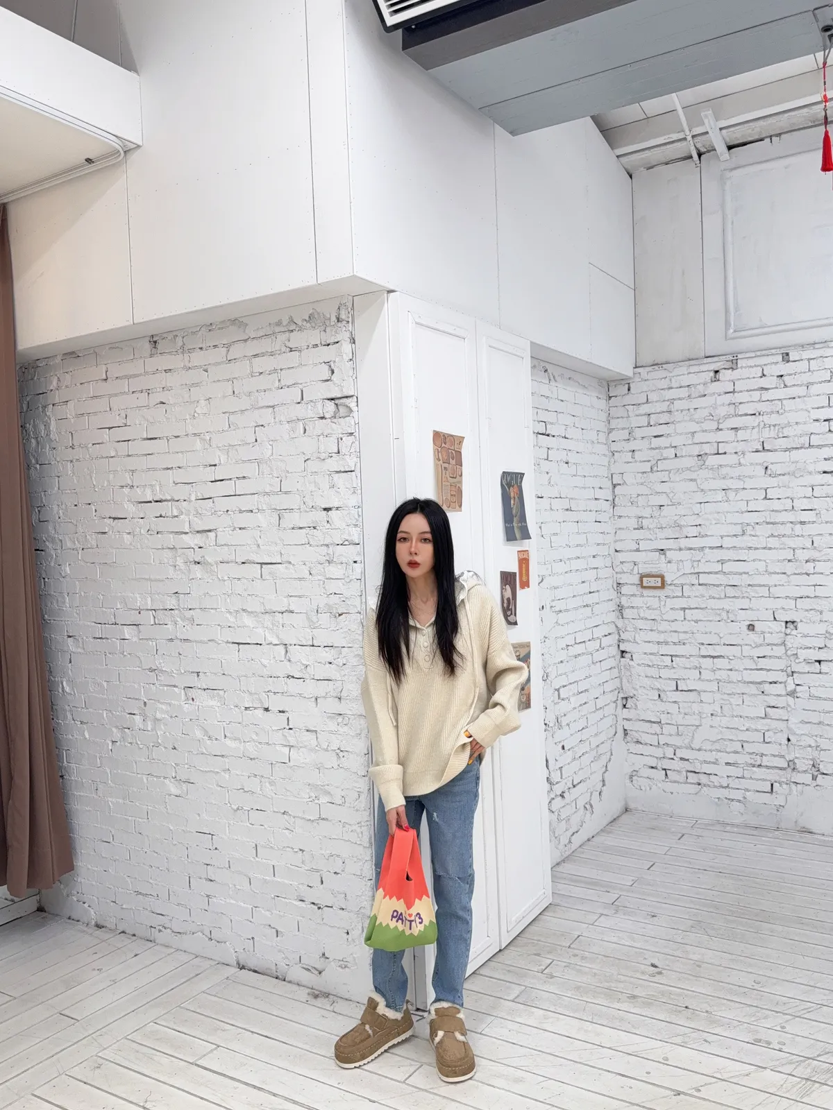我第一眼看到就好喜歡那顆扣子 覺得扣子搭配可以綁帶的設計