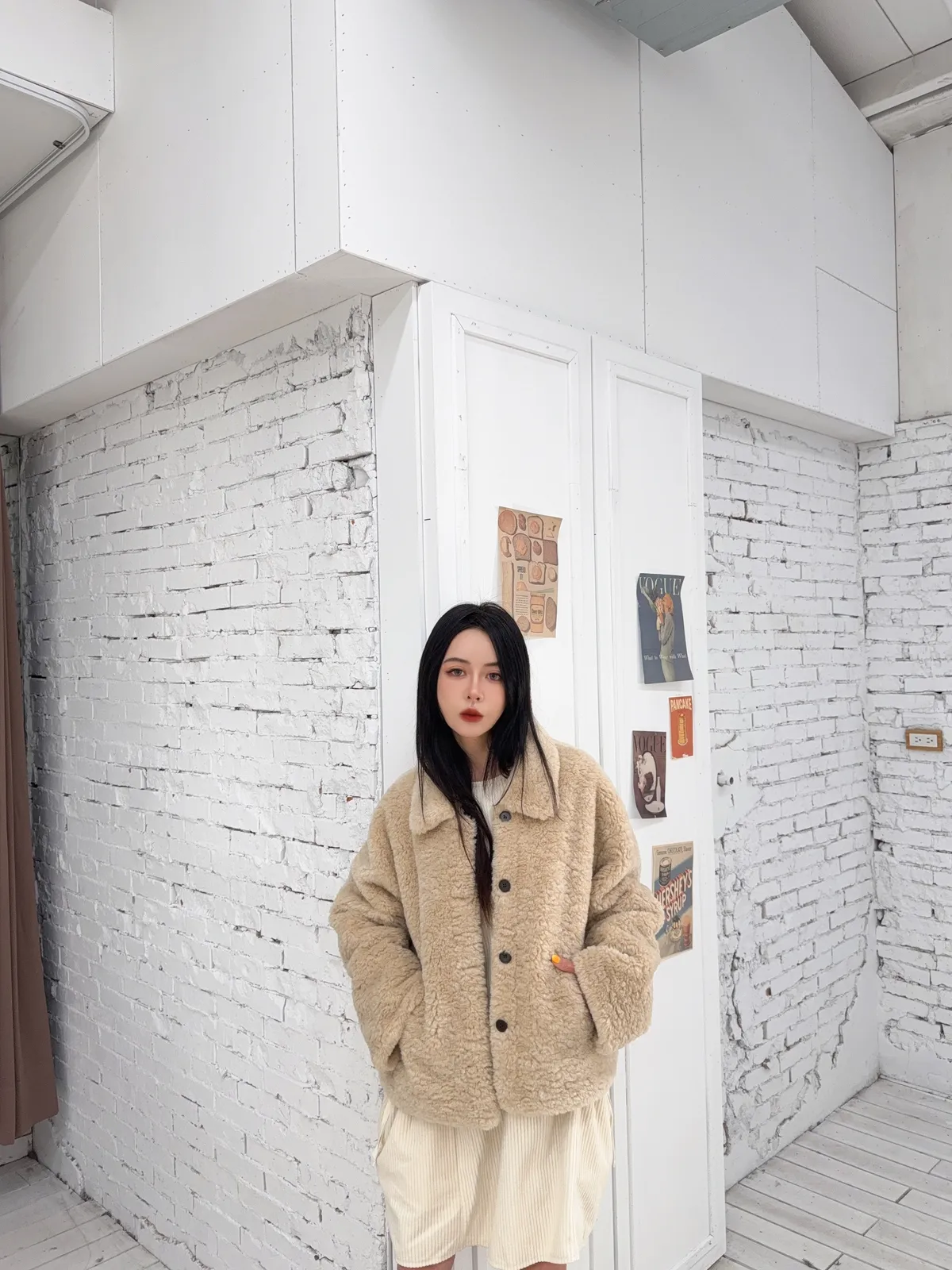 聚酯纖維100%超貴氣的外套這款QQ毛是超軟超軟的泰迪熊那種毛毛感金剛戰士家居然出這款而且還有三色 是不是很過分內裡有擋風材質 所以該有的擋風跟基本保暖沒問題的呀這款穿上因為是泰迪熊的軟軟毛 所以不膨不腫長度也不會太長 更不會顯老氣反而有年輕時髦感 跟貴婦感這款的毛真的超級親膚超級舒服 很像軟毛呢小被被的觸感啦