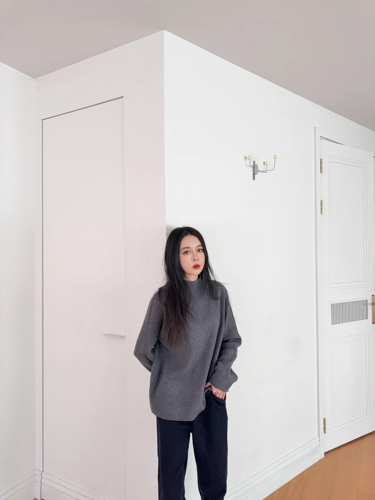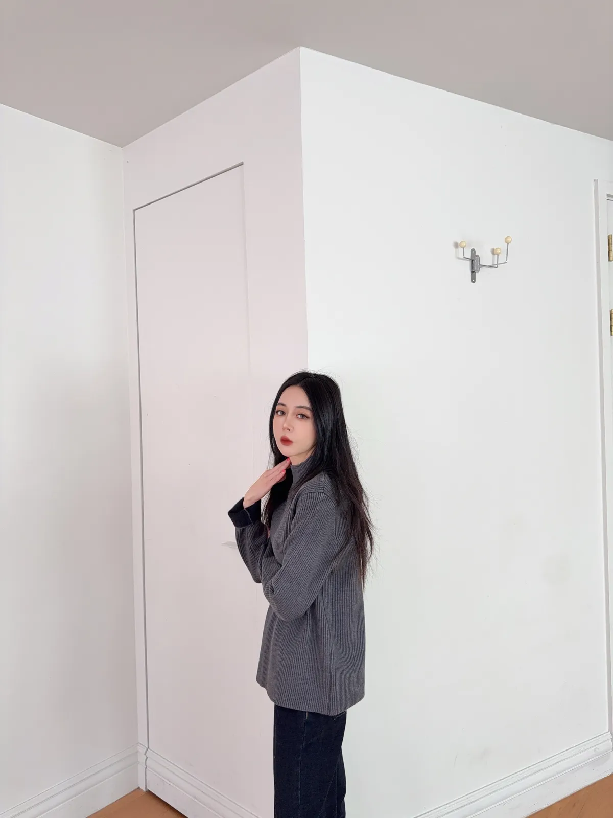 他每一個顏色我都有反折拍手袖 讓你看他的磨毛