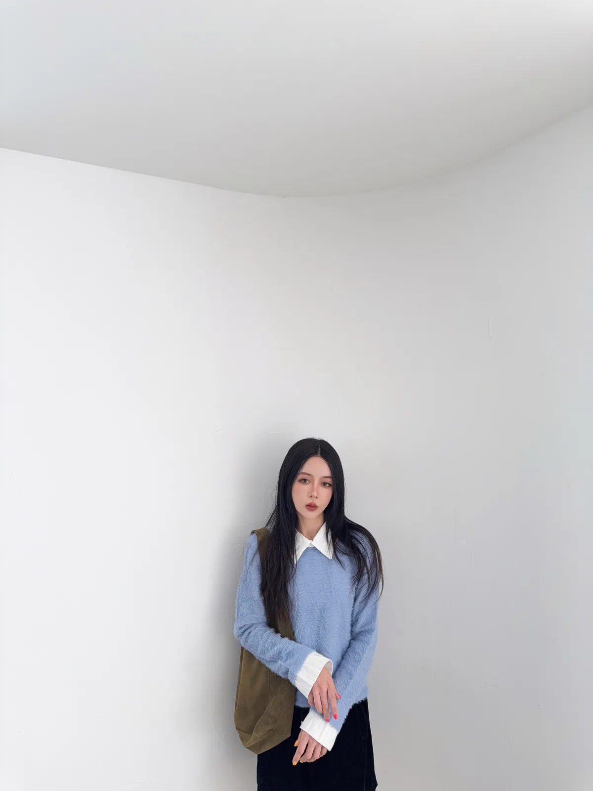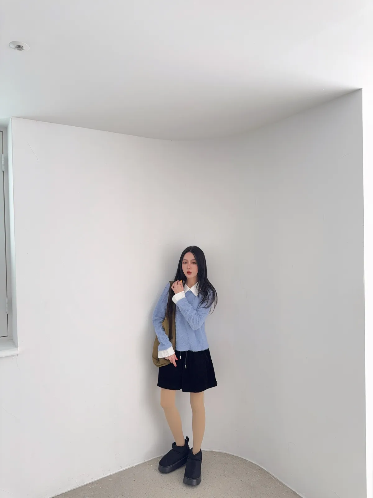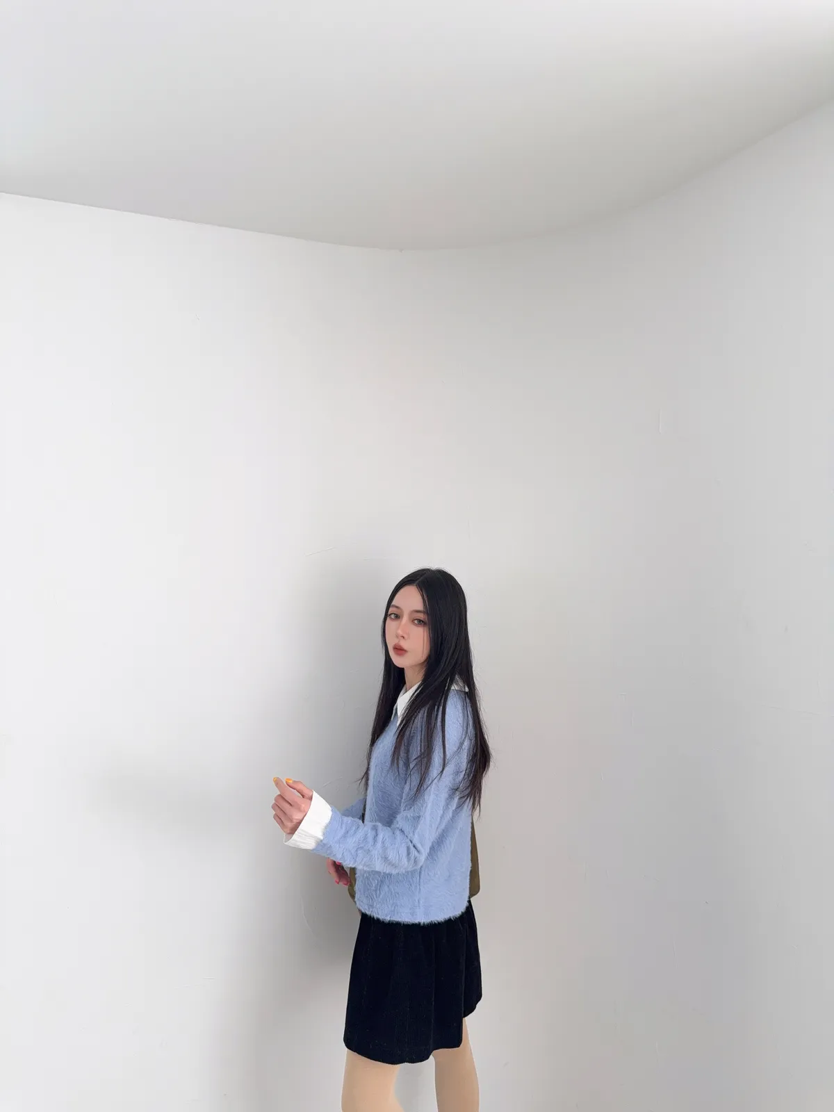 壓克力70%尼龍15%羊毛15%這款上衣的配色超美的誒而且我好喜歡他的微毛流觸感整體很貴婦但又不是很囂張的那種誇張毛流簡單的剪裁 配上面料的特色 整格超加分這件我穿上都是薄長袖的概念 都不是那種厚毛呢 不用擔心哦薄薄軟軟的長袖感拼接而且這款的藍色超好看 很難界定的藍 是很美很清透的那種很舒服的藍灰混搭配上這個毛流超有質感的