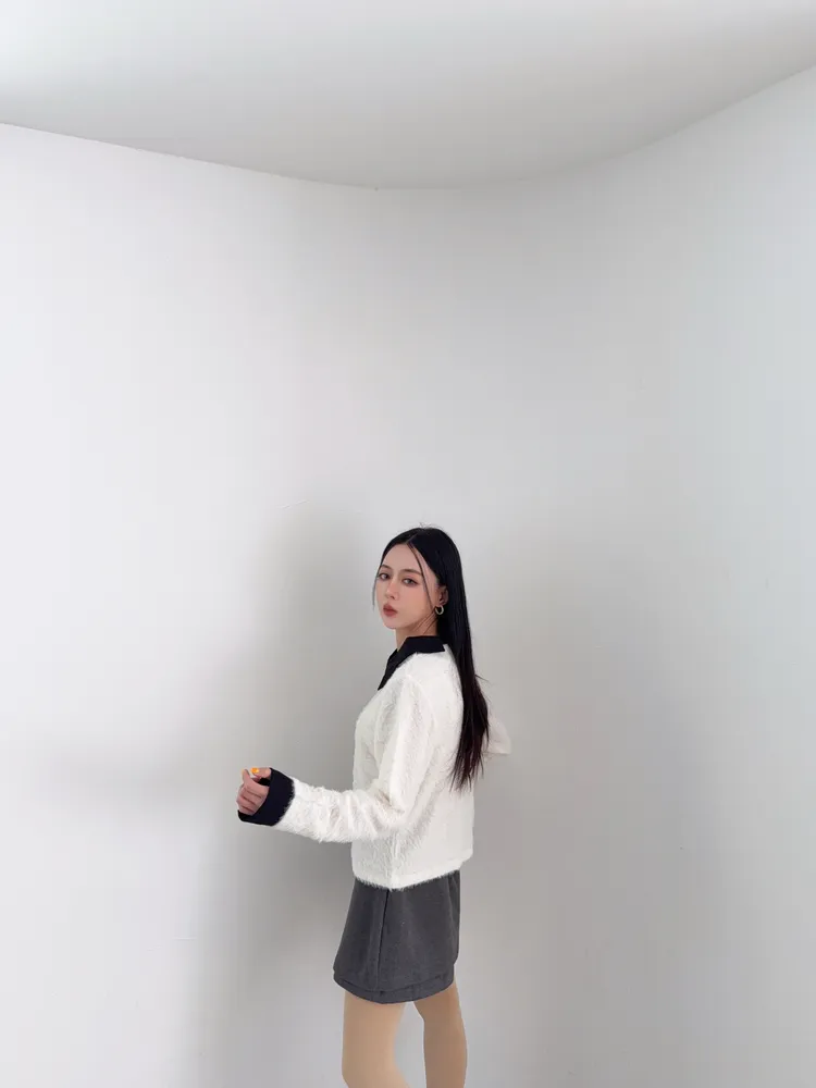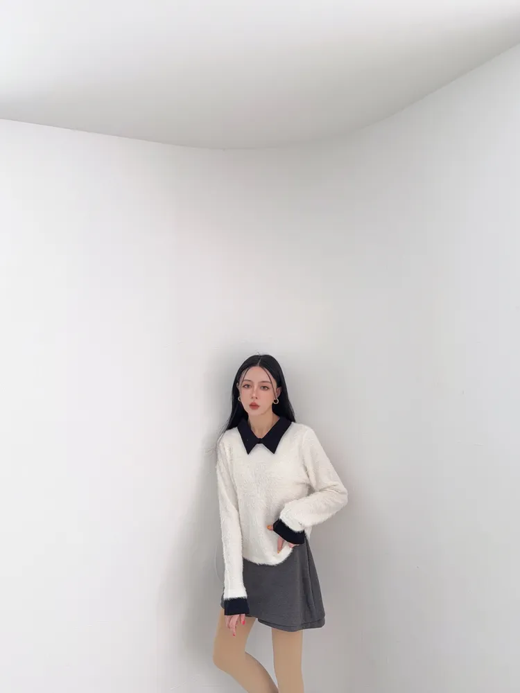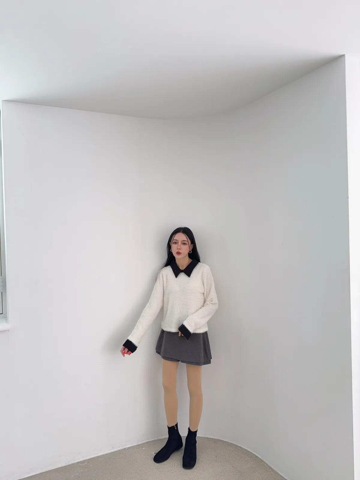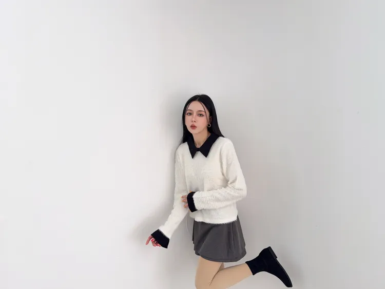 壓克力70%尼龍15%羊毛15%這款上衣的配色超美的誒而且我好喜歡他的微毛流觸感整體很貴婦但又不是很囂張的那種誇張毛流簡單的剪裁 配上面料的特色 整格超加分這件我穿上都是薄長袖的概念 都不是那種厚毛呢 不用擔心哦薄薄軟軟的長袖感拼接而且這款的藍色超好看 很難界定的藍 是很美很清透的那種很舒服的藍灰混搭配上這個毛流超有質感的