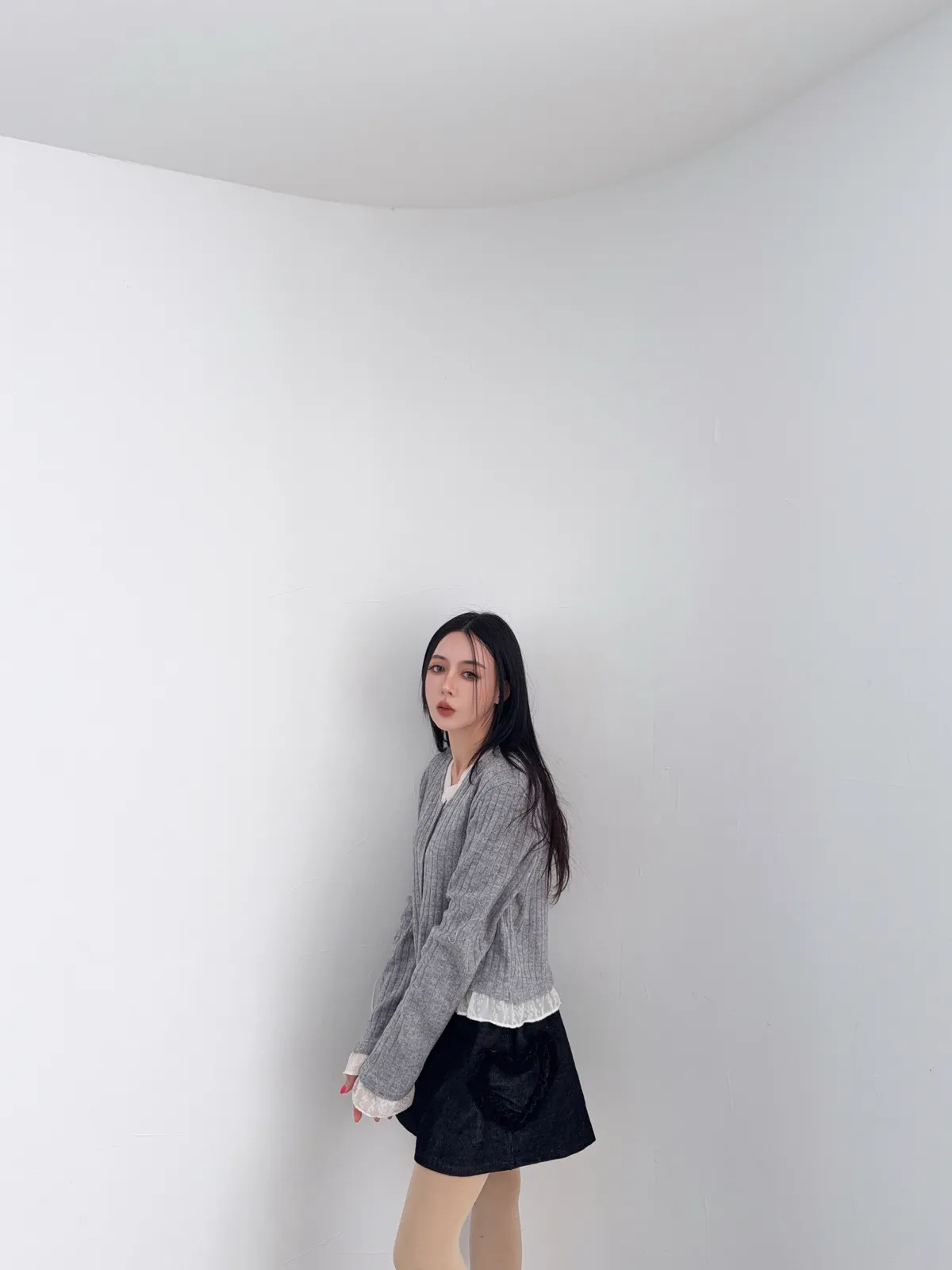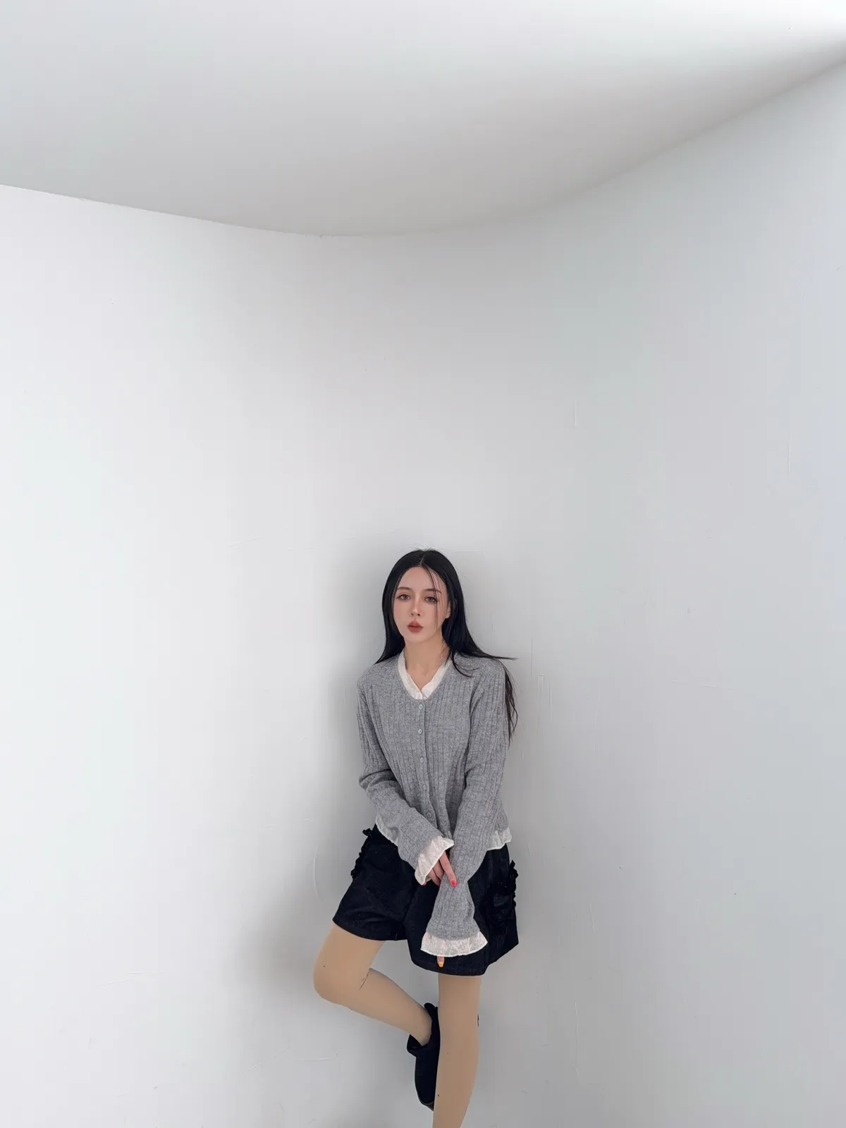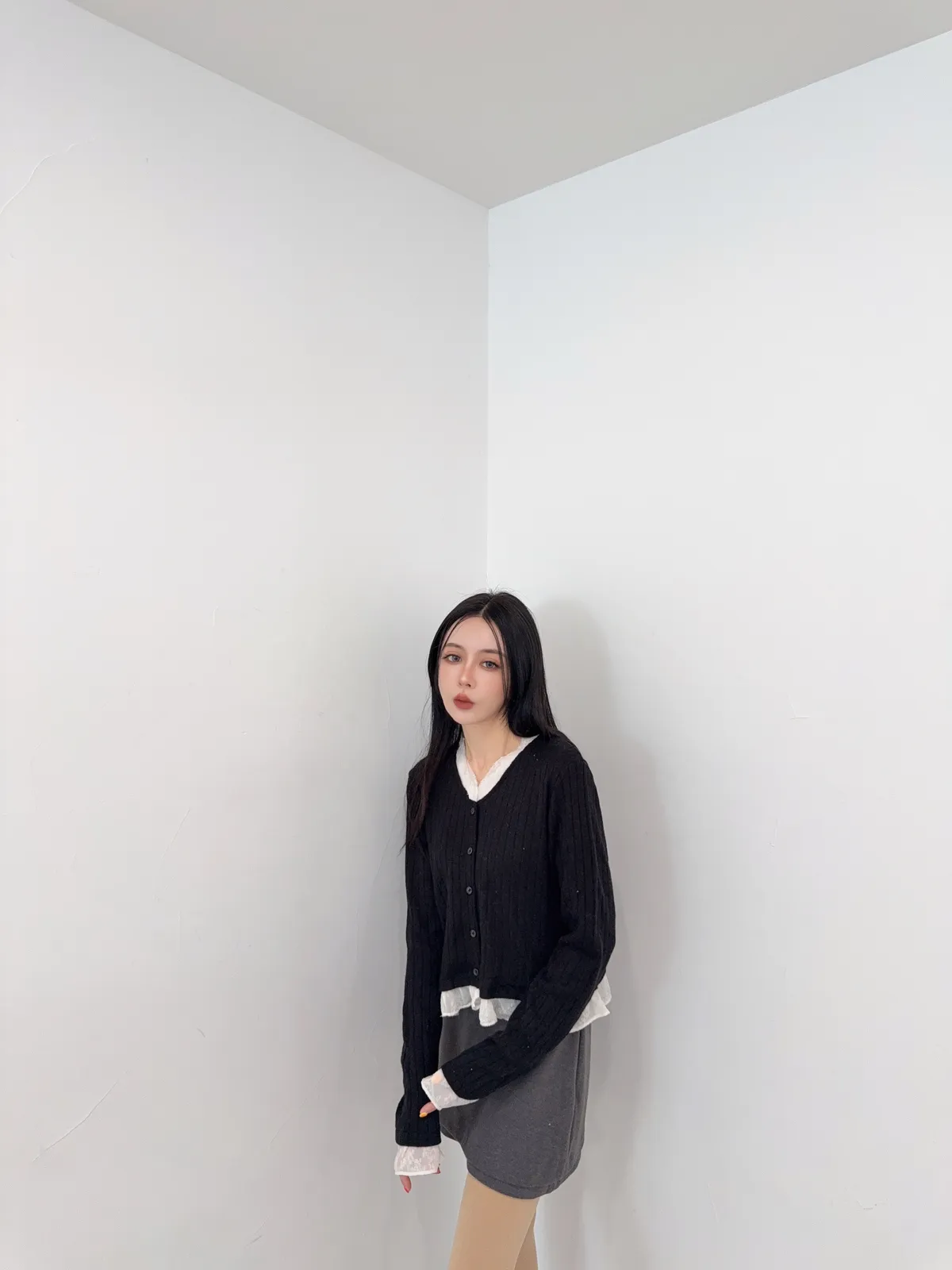 壓克力65%尼龍20%羊毛15%超喜歡這種薄軟針織 薄薄軟軟 很輕柔又輕盈真的是軟針織很修飾 不會貼死身體又很吃脂肪最喜歡手袖跟領口都有異材質拼接領口的有抽鬚 記得這種薄透針織 清洗的時候一定要洗衣袋 不要被其他的衣服勾傷了因為這款是真的薄軟針織的薄長袖概念哦好喜歡這種散擺拼接的設計 簡簡單單