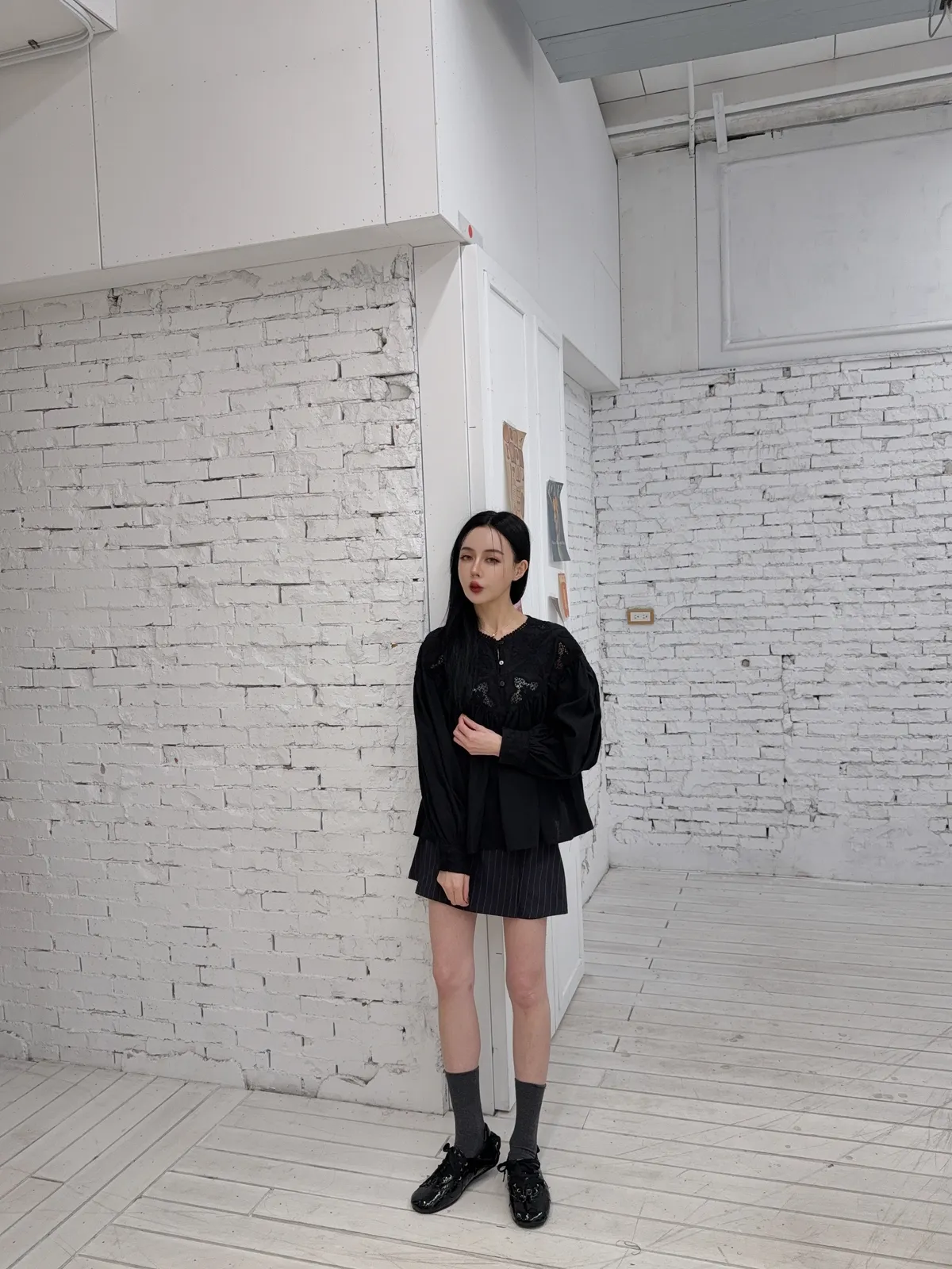 聚酯纖維,尼龍,彈性纖維混紡下半身記得看影片 介紹更快更清楚 不要看文字拜託各位了西裝褲材質面料非常涼快 很薄 涼爽後彈性帶 側拉鍊正面有兩個內縫的設計 不會輕易打開 我覺得超美 比百褶裙更好看更有氣質