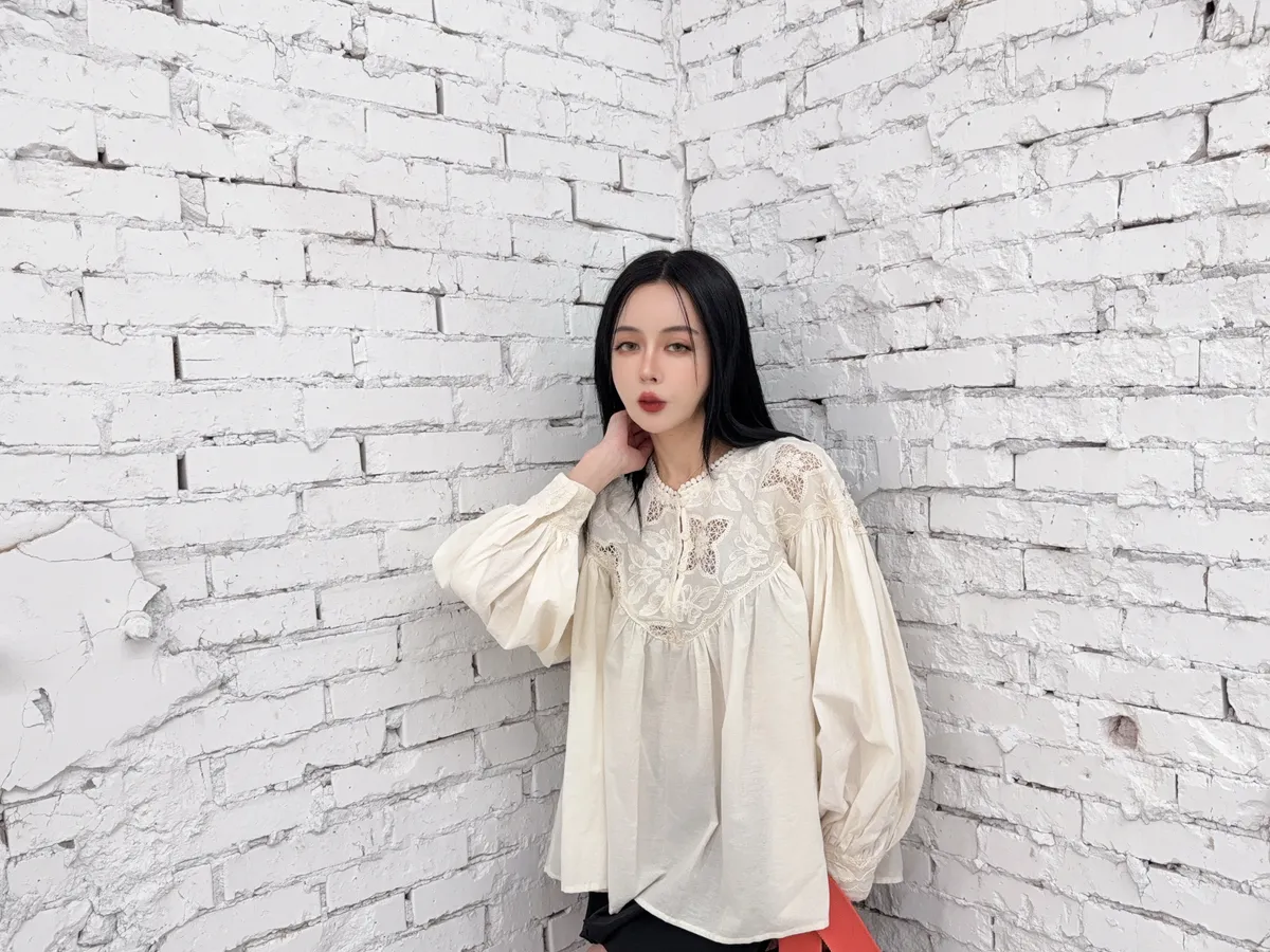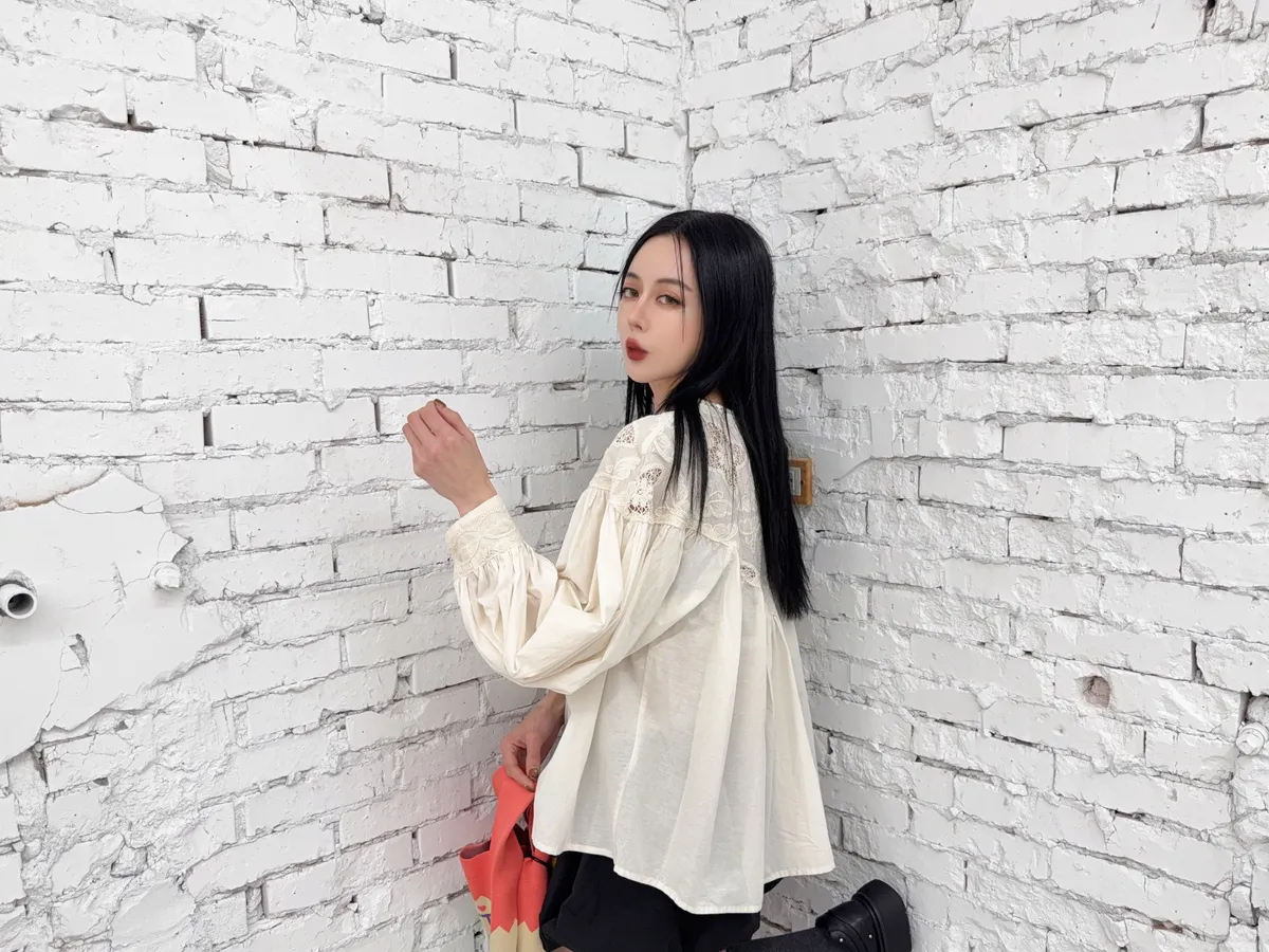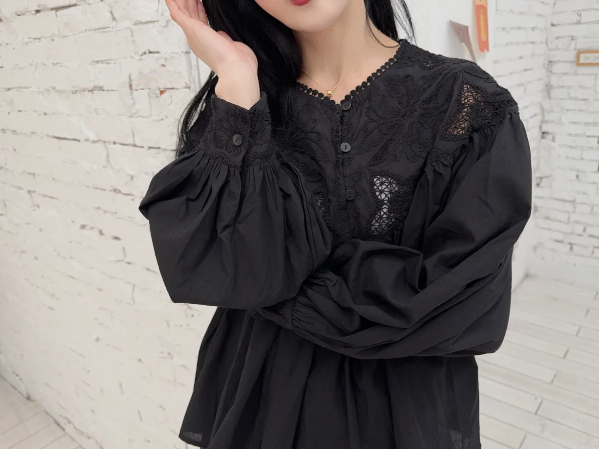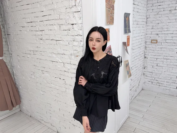 棉100%麻煩注意這個花的組成是實心跟簍空花交錯組成但是不會每一件的位置花朵的都一樣喔他是隨機的也就是每一件哪邊是實心花哪邊是簍空花是隨機的 但一定是這兩種圖案組成的(我影片有講得很清楚)我拍照的米白跟黑色 這兩件的花色組成就是不一樣的隨機唷