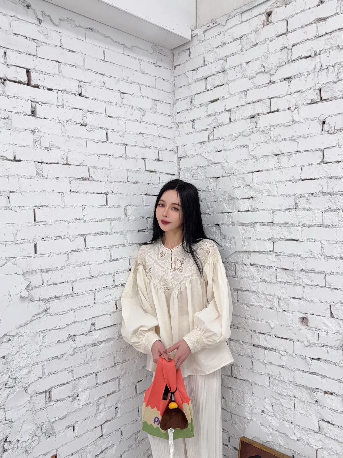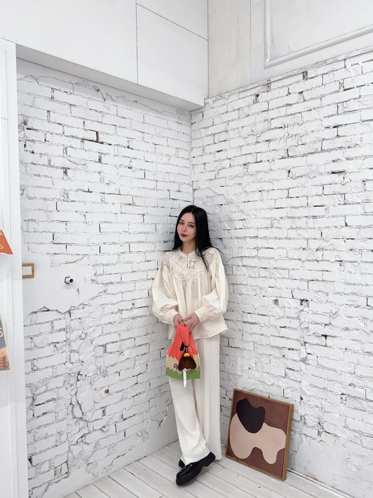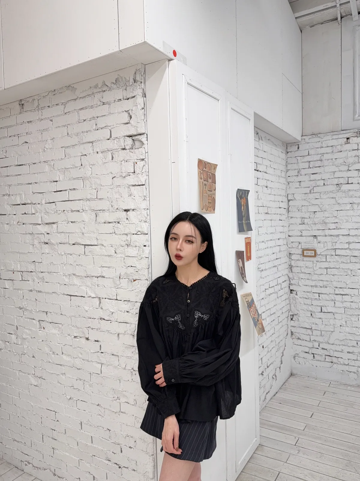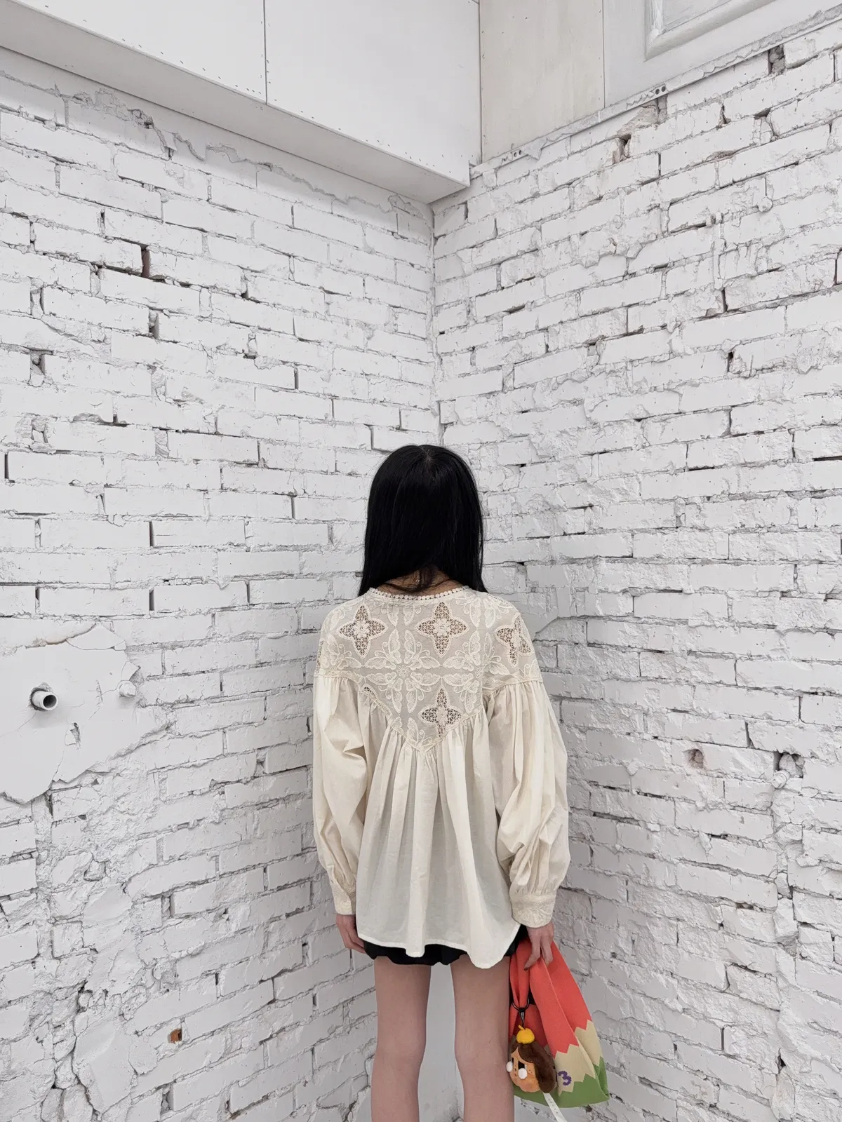 棉100%麻煩注意這個花的組成是實心跟簍空花交錯組成但是不會每一件的位置花朵的都一樣喔他是隨機的也就是每一件哪邊是實心花哪邊是簍空花是隨機的 但一定是這兩種圖案組成的(我影片有講得很清楚)我拍照的米白跟黑色 這兩件的花色組成就是不一樣的隨機唷