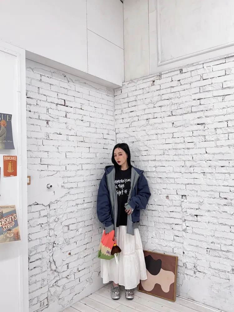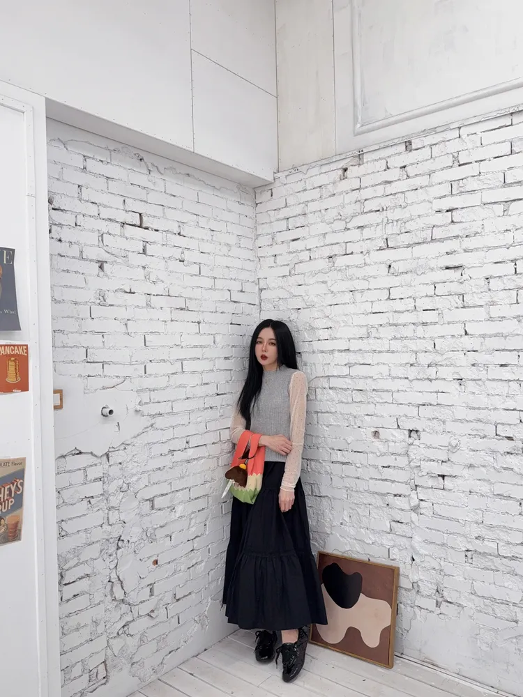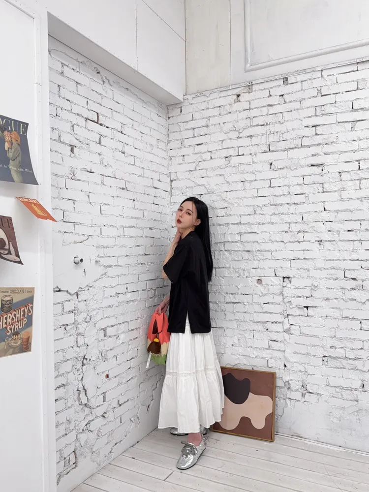 我比較矮 為了想露出腳踝 我有反折一折裙頭拍照 但好像也不奇怪 哈哈哈哈