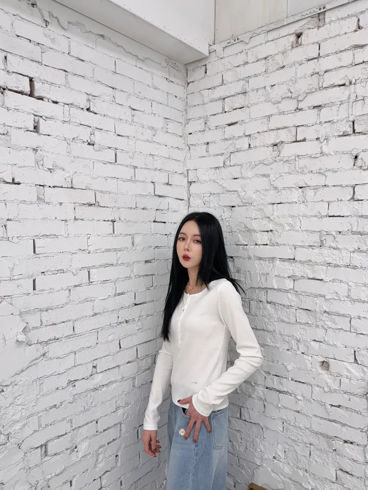 棉+彈性纖維混紡這款螺紋棉質金剛戰士真的很會出素素棉質款薄長袖薄長袖系列 不是厚實的彈性好 設計簡單 就給喜歡簡單不要複雜路線的你而且這種上衣又好搭配 想要俐落幹練 配個西裝褲 西裝裙也可以配牛仔褲不論長短都可以休閒這款上衣最可愛是有一個一角銀色小牌寫mind 一個很有質感的草寫標牌